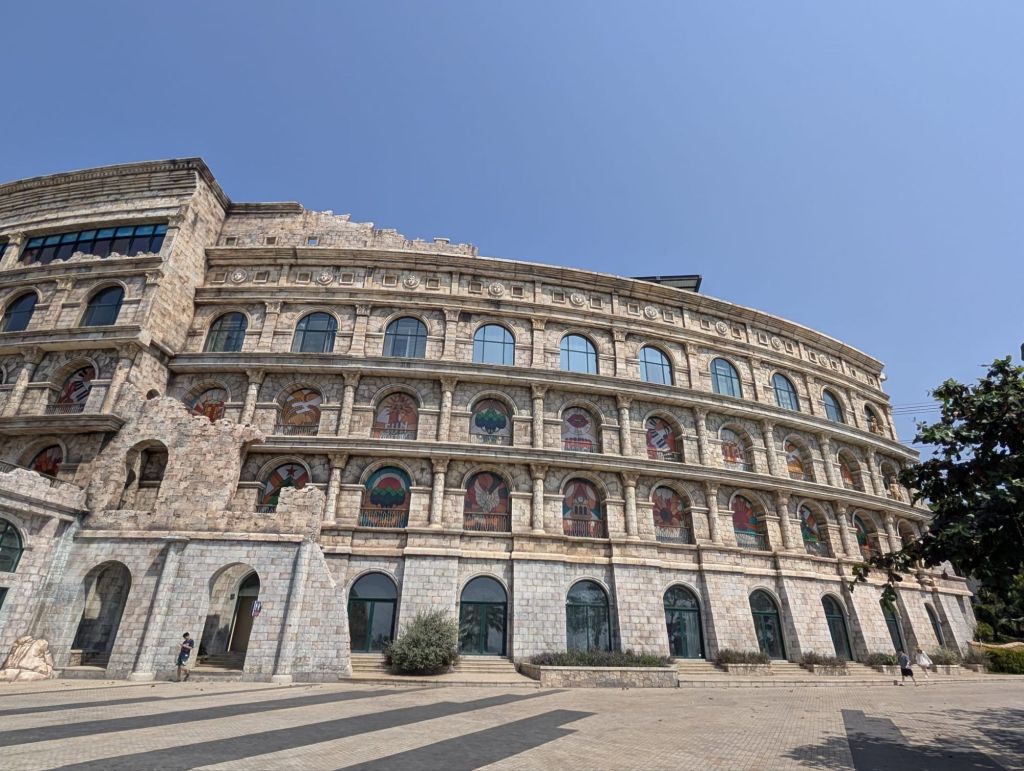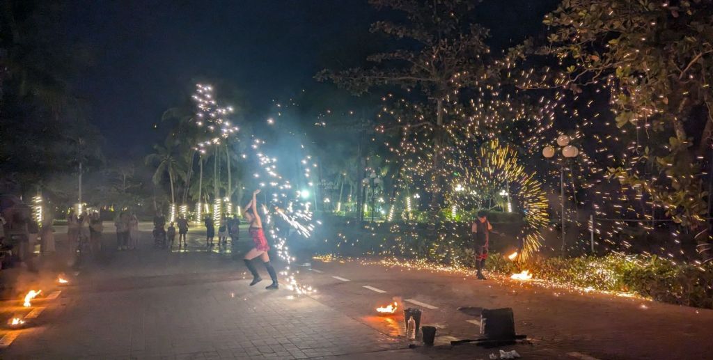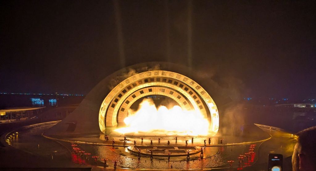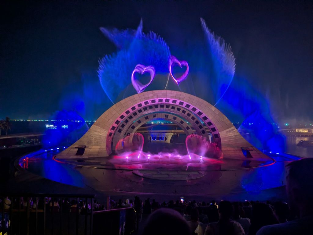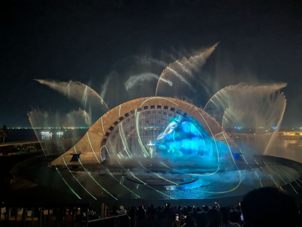 Allein eine Wasserwand diente als Leinwand. Die Licht, Wasser und Feuerspiele haben uns voll geflasht.