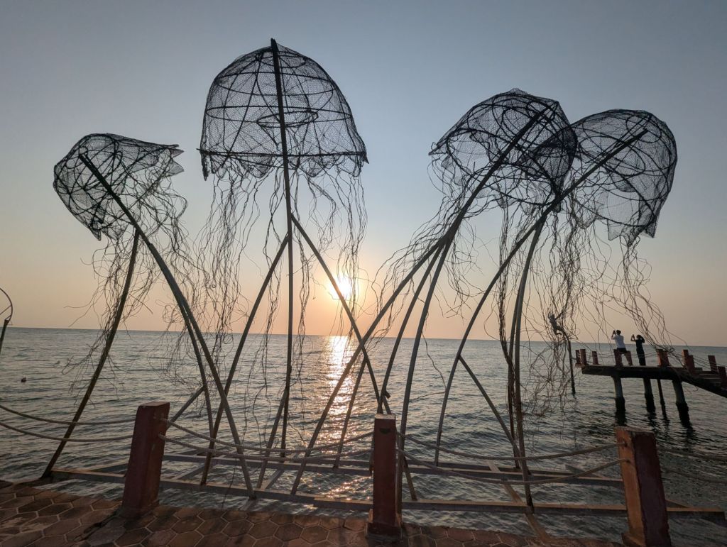Bei Sonnenuntergang erreichen wir Sunset Town.