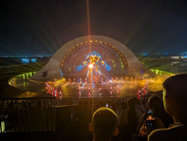 Allein eine Wasserwand diente als Leinwand. Die Licht, Wasser und Feuerspiele haben uns voll geflasht.