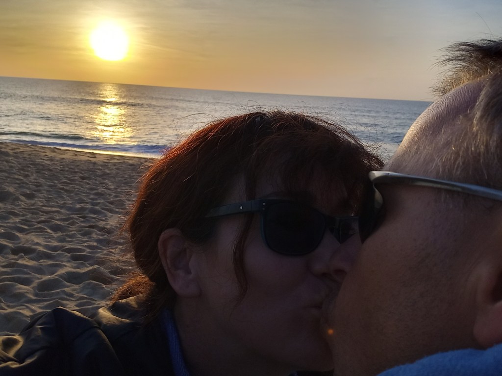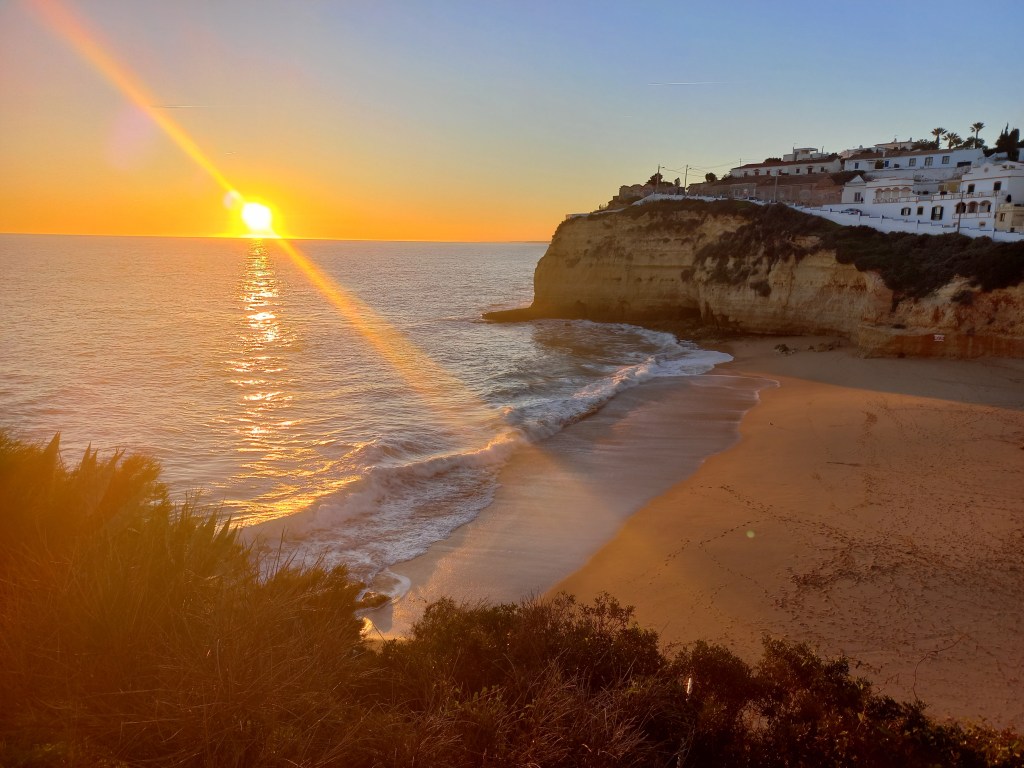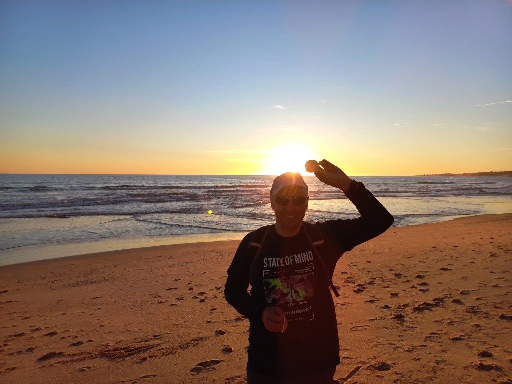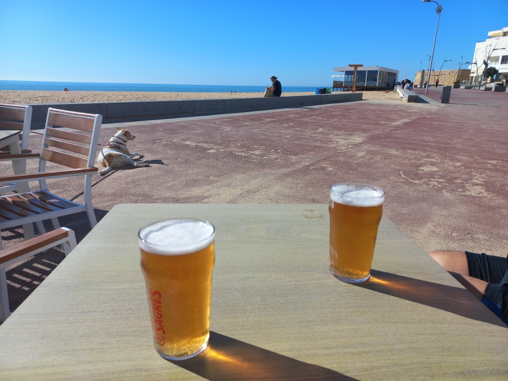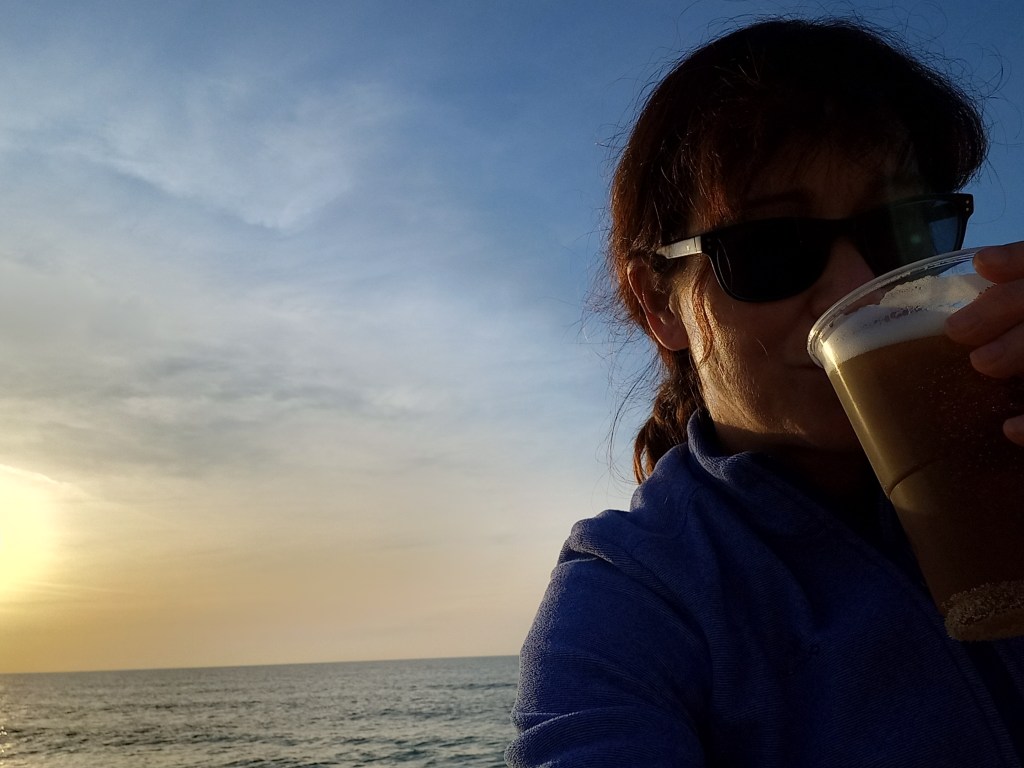 Den Sonnenuntergang am Strand genießen wir mit einem Bier.