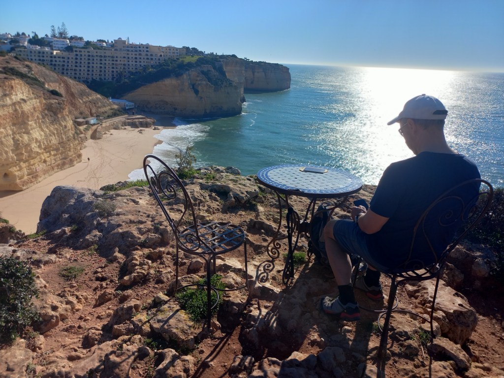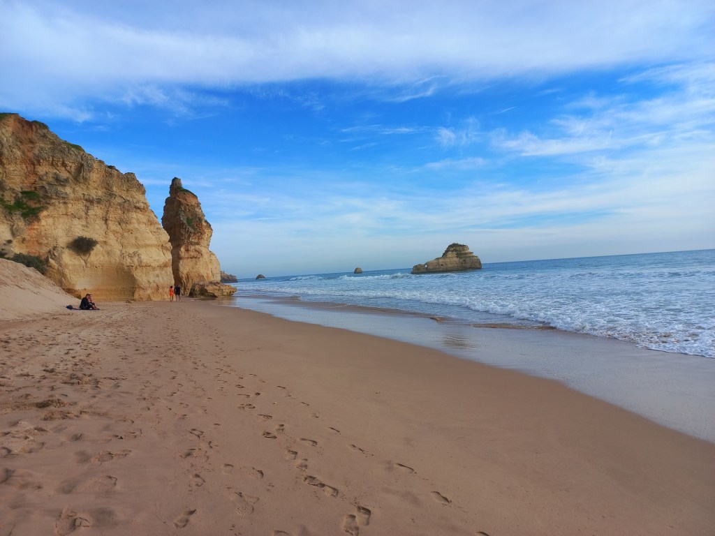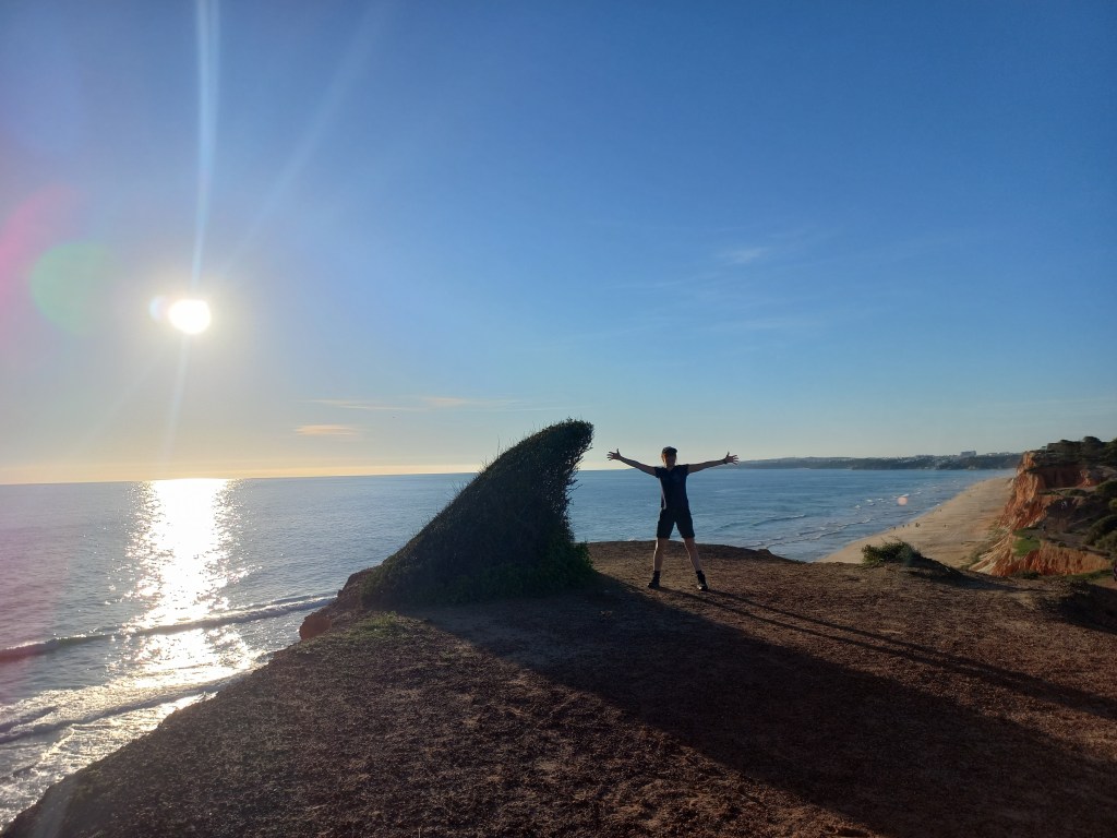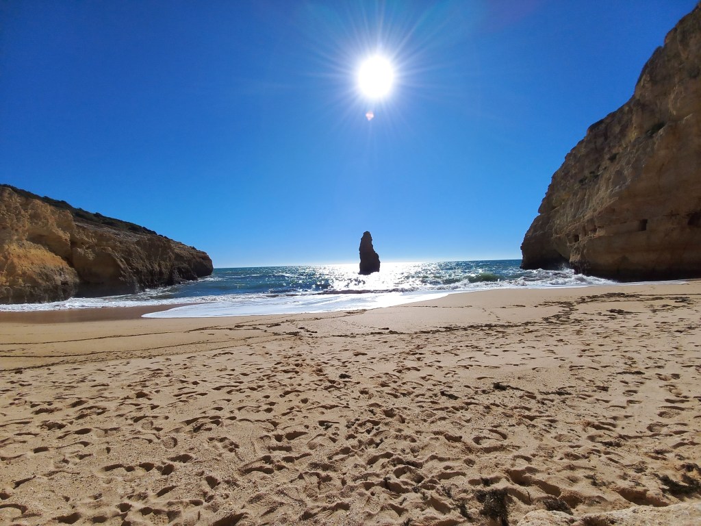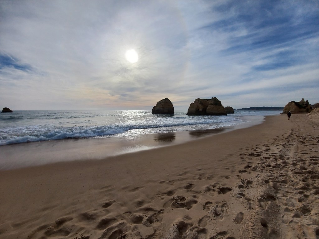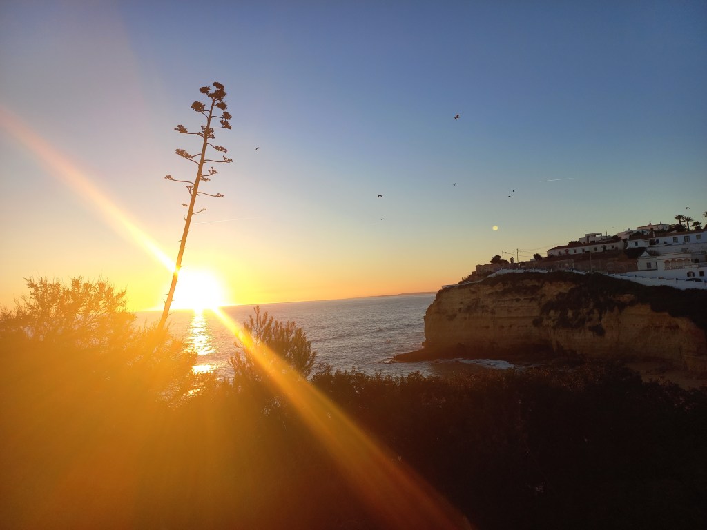 Den Sonnenuntergang am Strand genießen wir mit einem Bier.