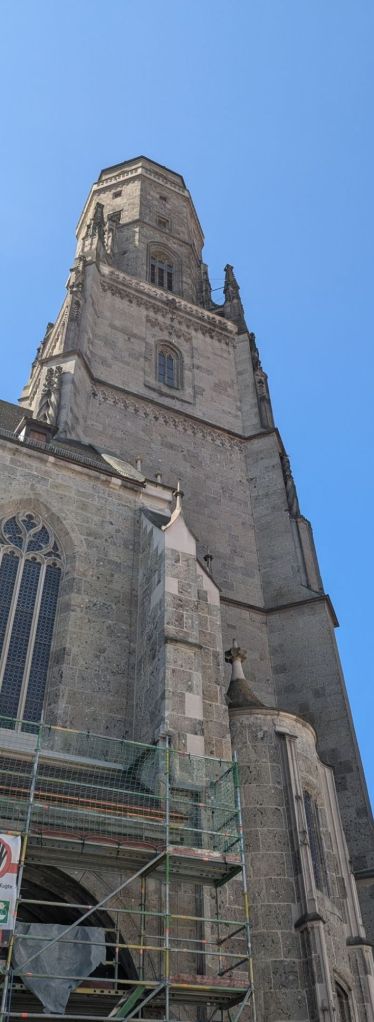Bevor es mit dem Radeln losgeht, klettern wir noch 90 m, bzw 350 Stufen in die Spitze des Glockenturms „Daniel“.