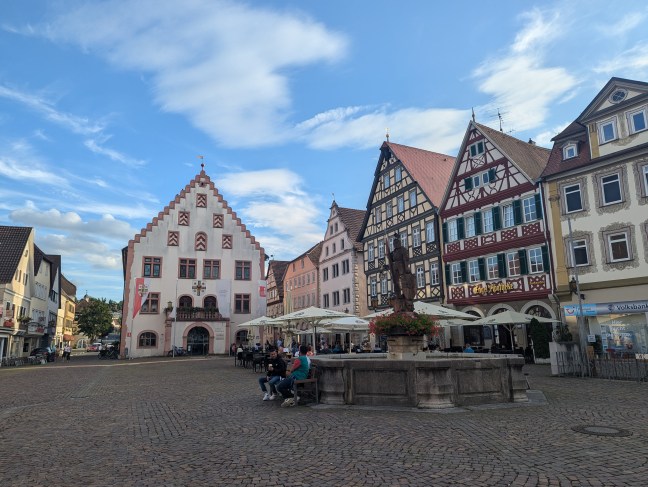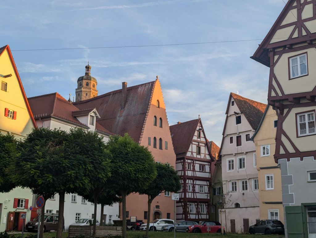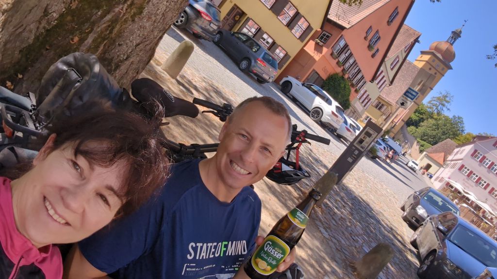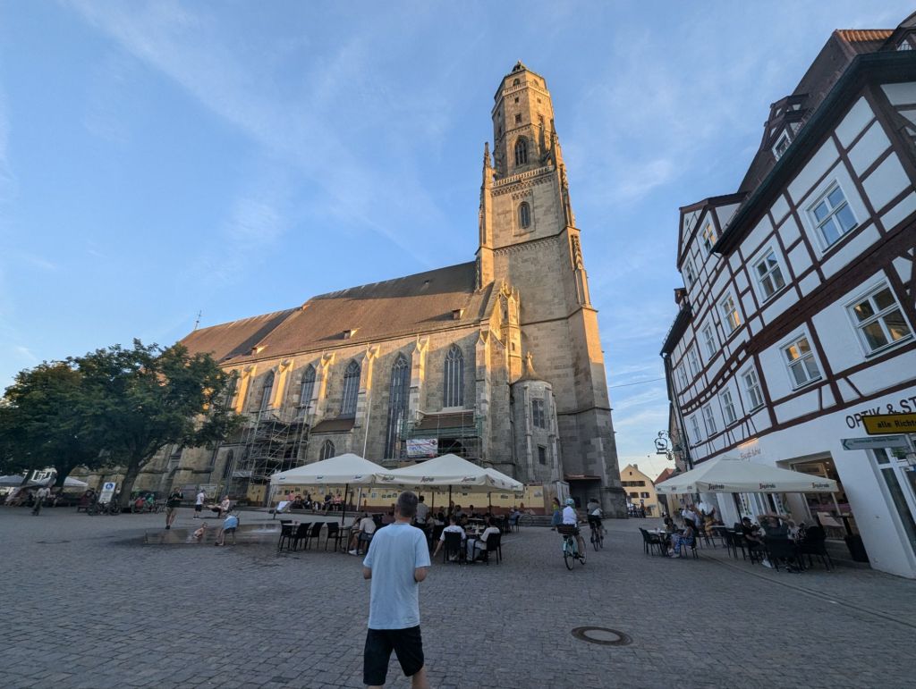 Nach der Stadtmauer ist Zeit fürs Verhandeln und ich handele Marcus 20 km runter, stattdessen ist unser neues Übernachtungsziel Nördlingen. Habe ich noch nie von gehört, obwohl hier der Fussballer Gerd Müller geboren wurde.