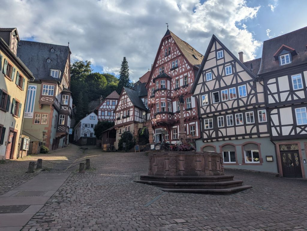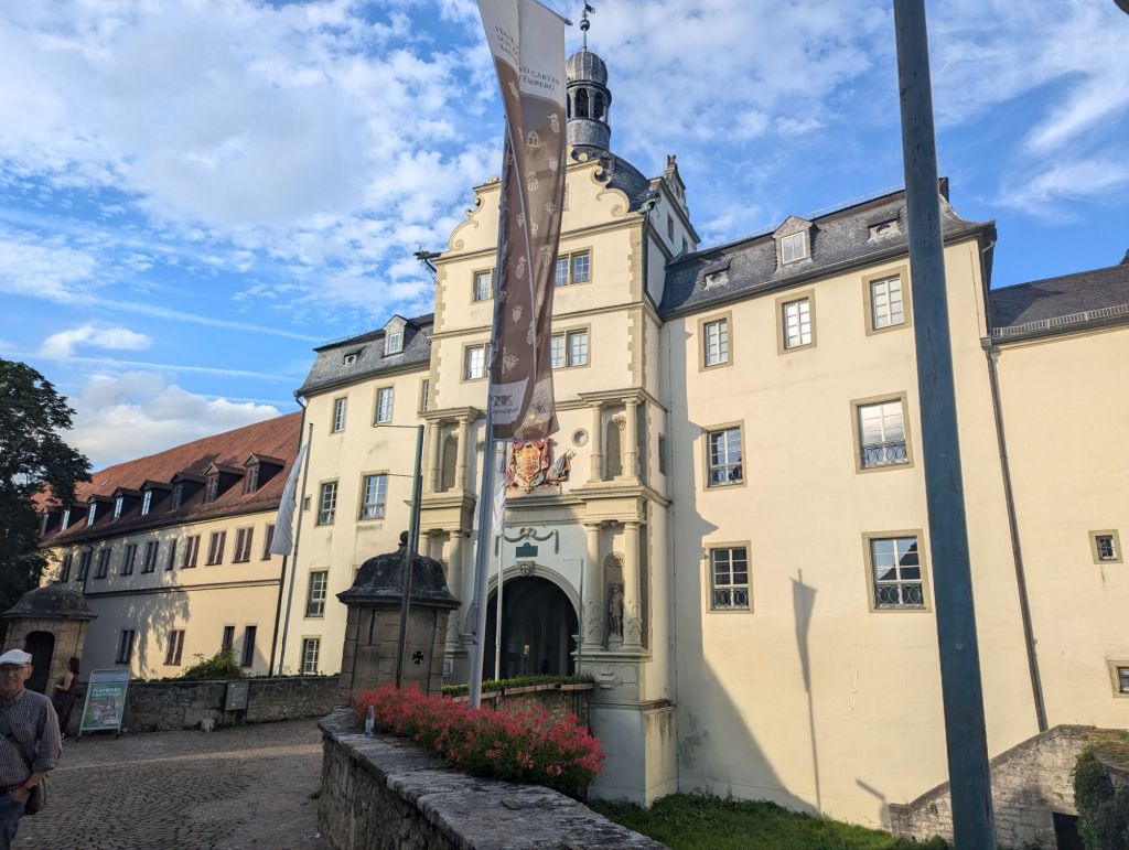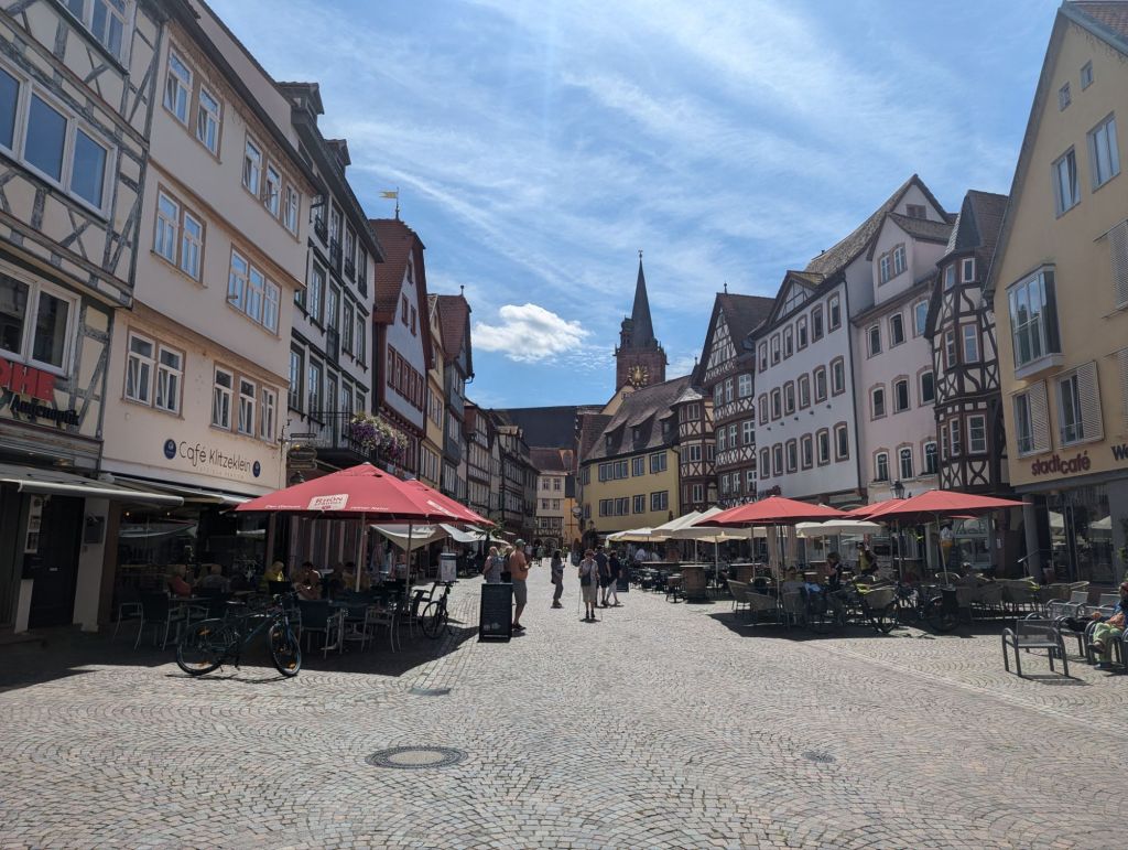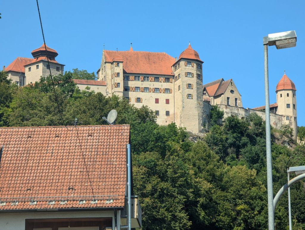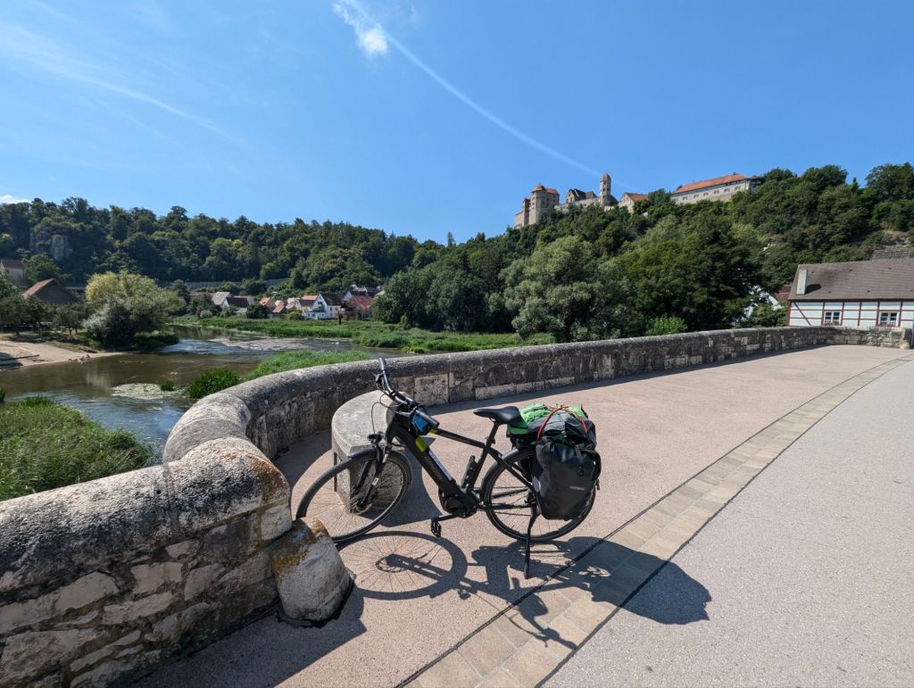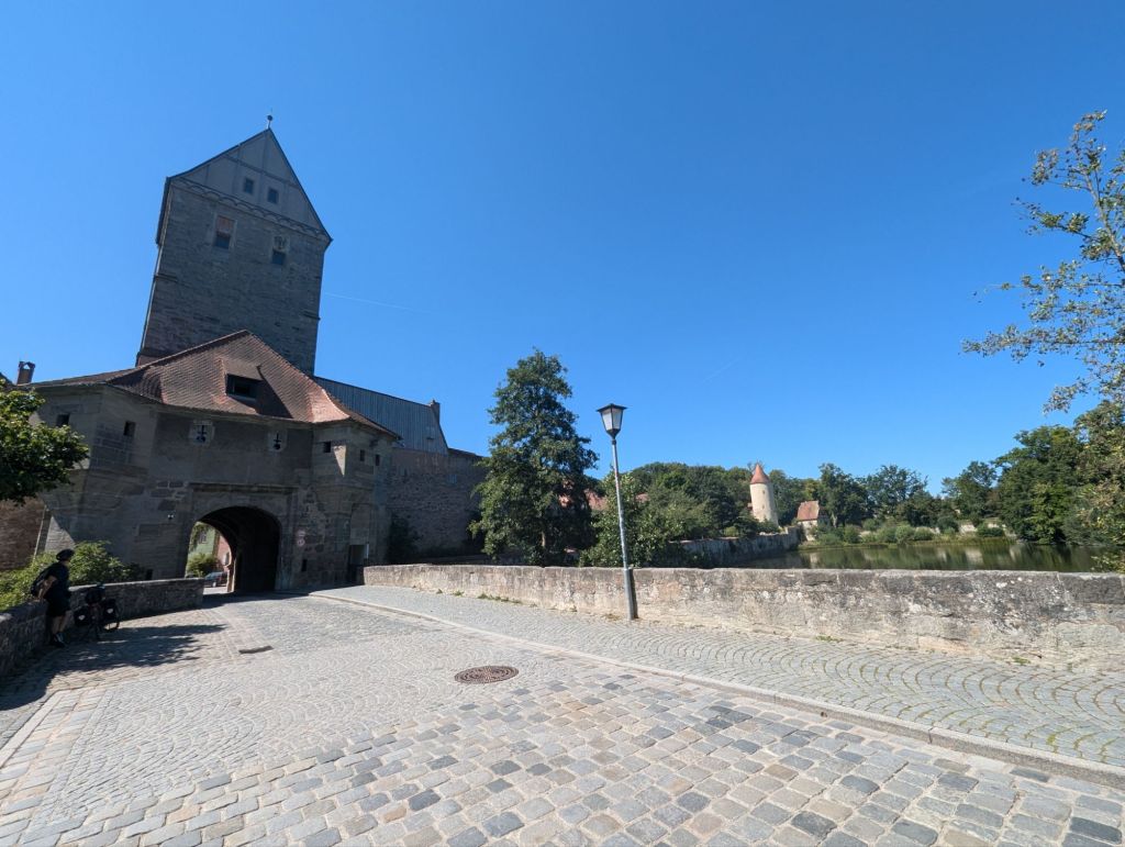 In Schillingsfürst versuchen wir unser Glück, den steilen Berg kämpfen wir uns hoch, den Akku schöpfen wir nicht voll aus, man weiß ja nie, ob wir dort ein Zimmer bekommen.