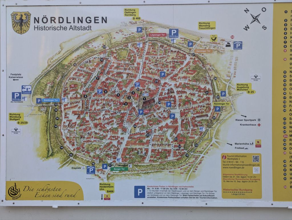 Die Stadt Nördlingen macht heute aus dem Nachmittag eine runde Sache, nicht nur wegen des Freibades mit Kraterrandblick sondern auch wegen der Stadt selbst.