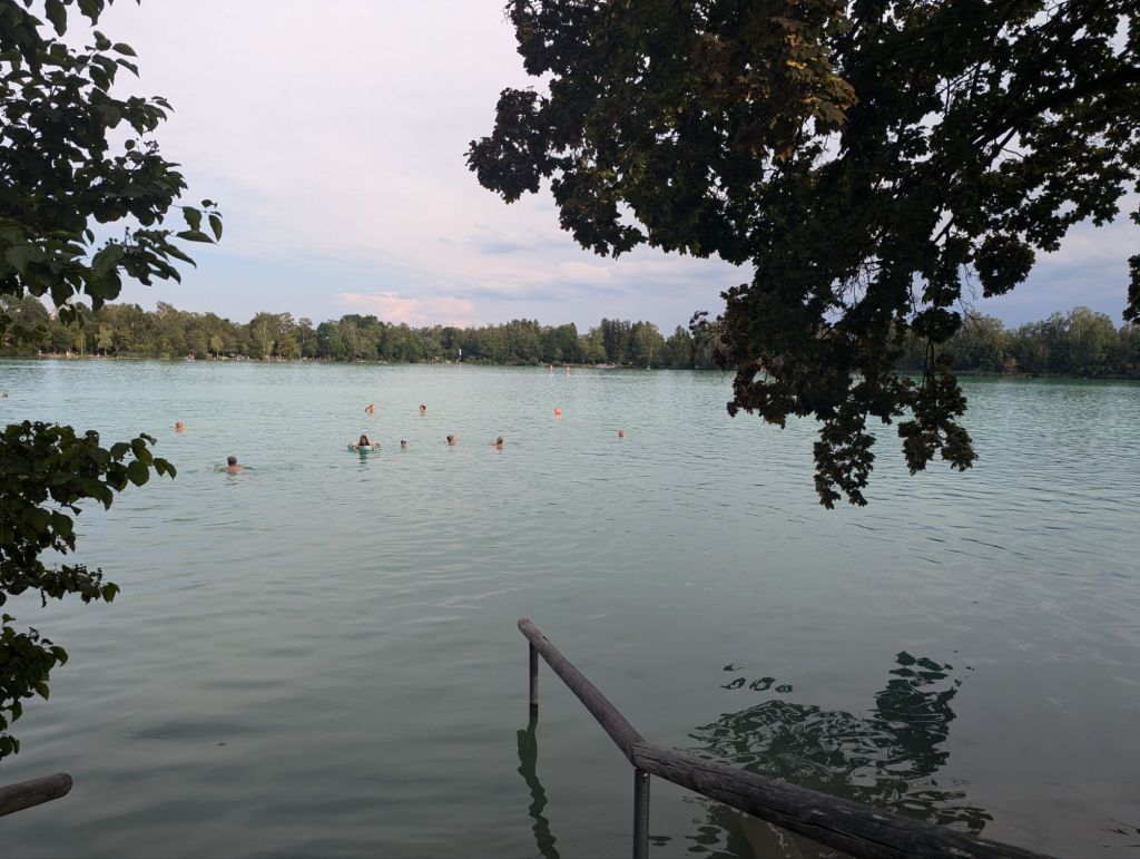 In Olching springen wir sogar noch in den Baggersee Olchinger See.