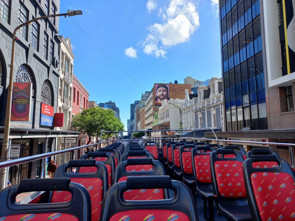 Da heute der Tafelberg ohne seine Wolkendecke schön zu sehen ist, geht es mit dem Doppeldeckerbus direkt zur Talstation.