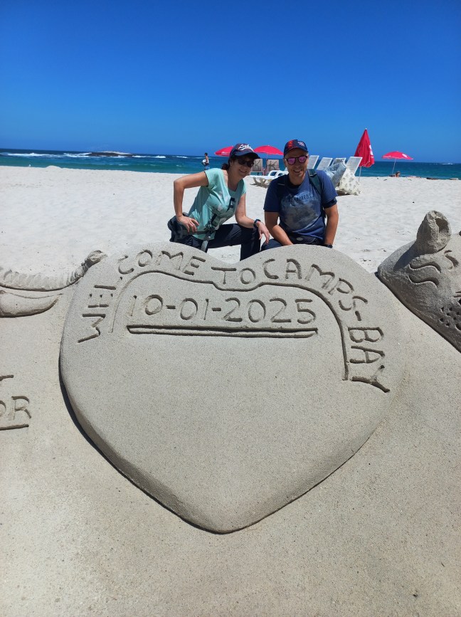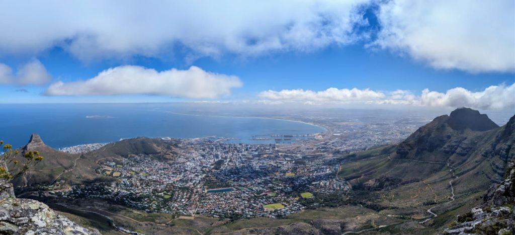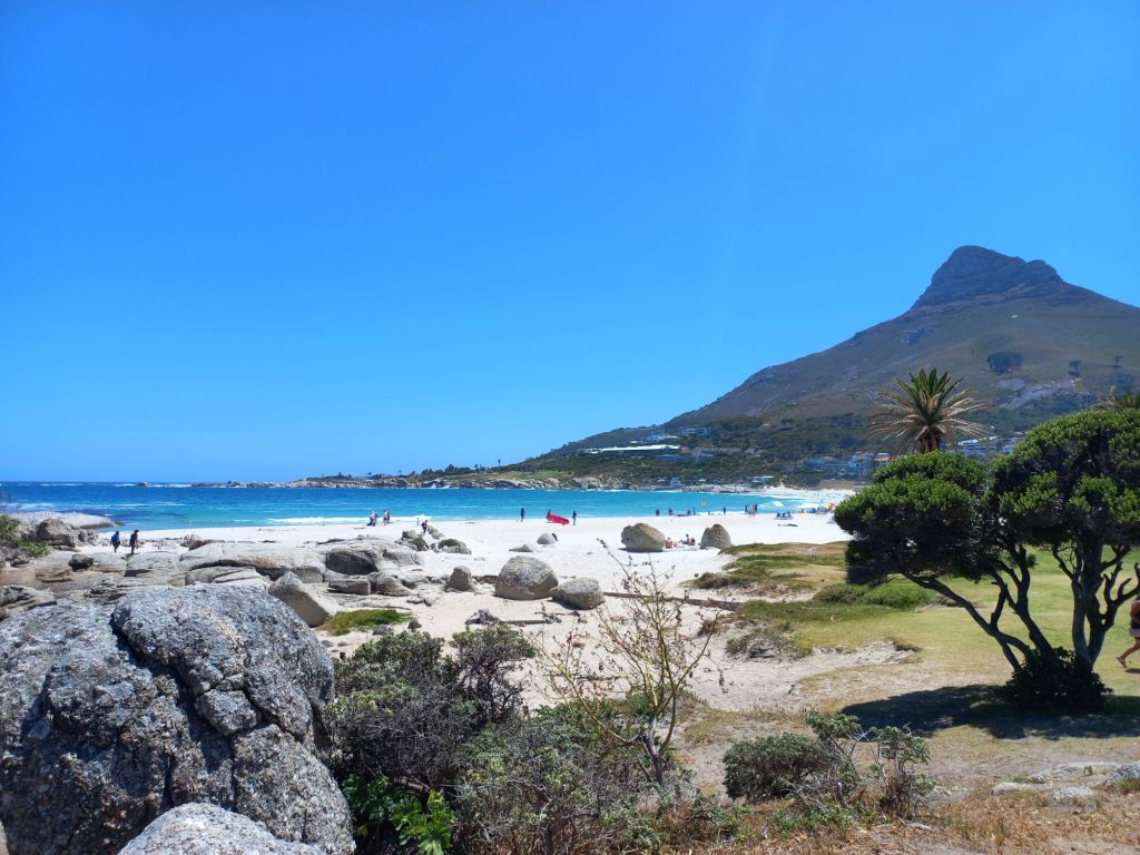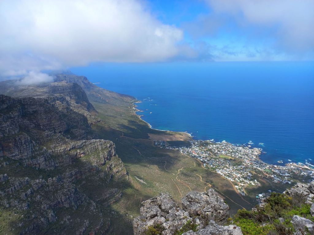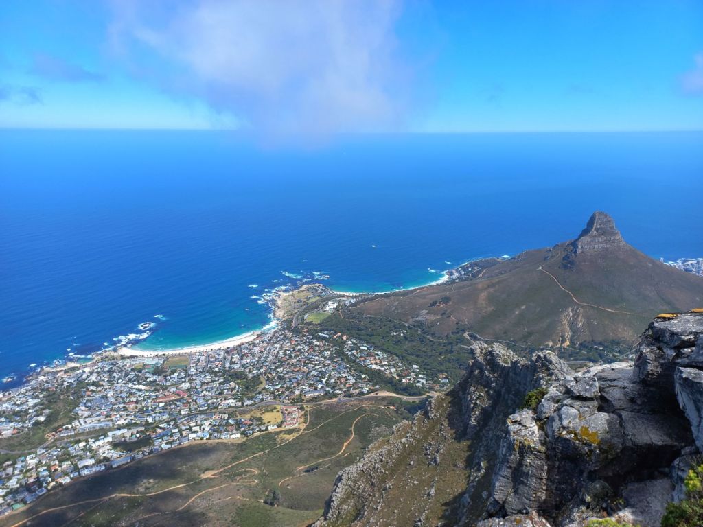 Vom Tafelberg kann man schon unser nächstes Ziel ausmachen, Camps Bay, einer der Traumstrände am Cap.