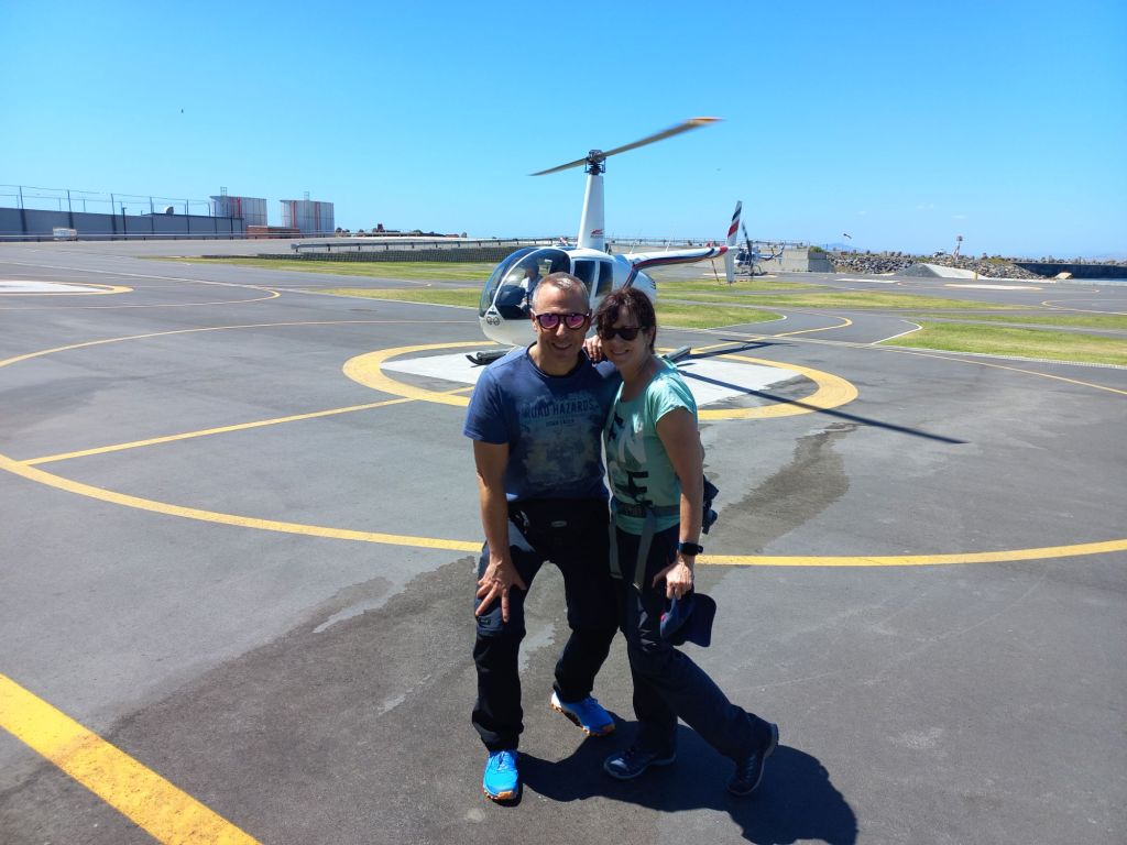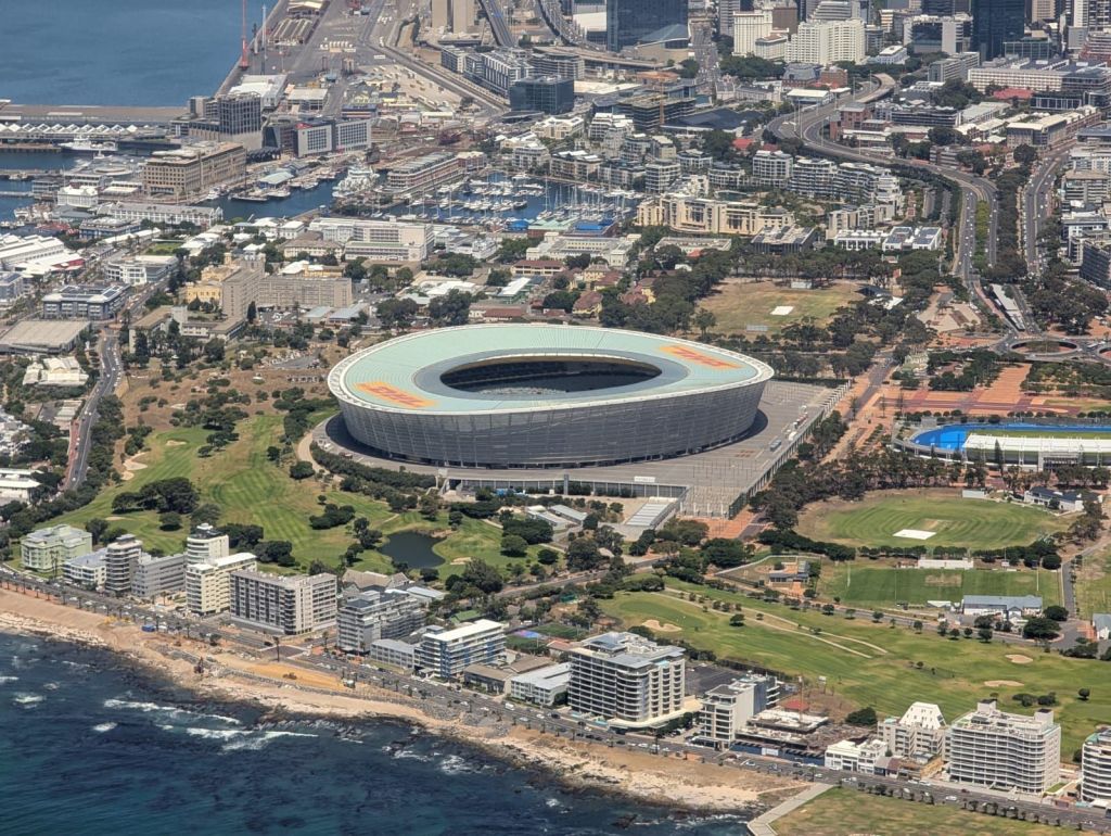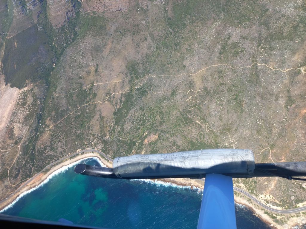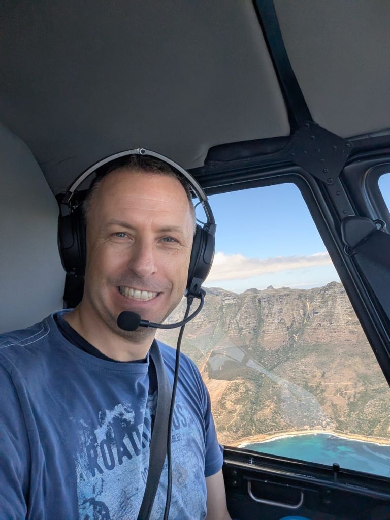 Wir fliegen mit dem Hubschrauber über Kapstadt,