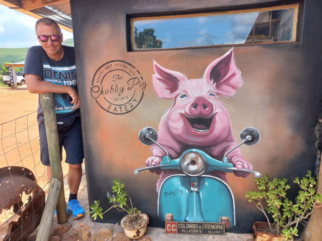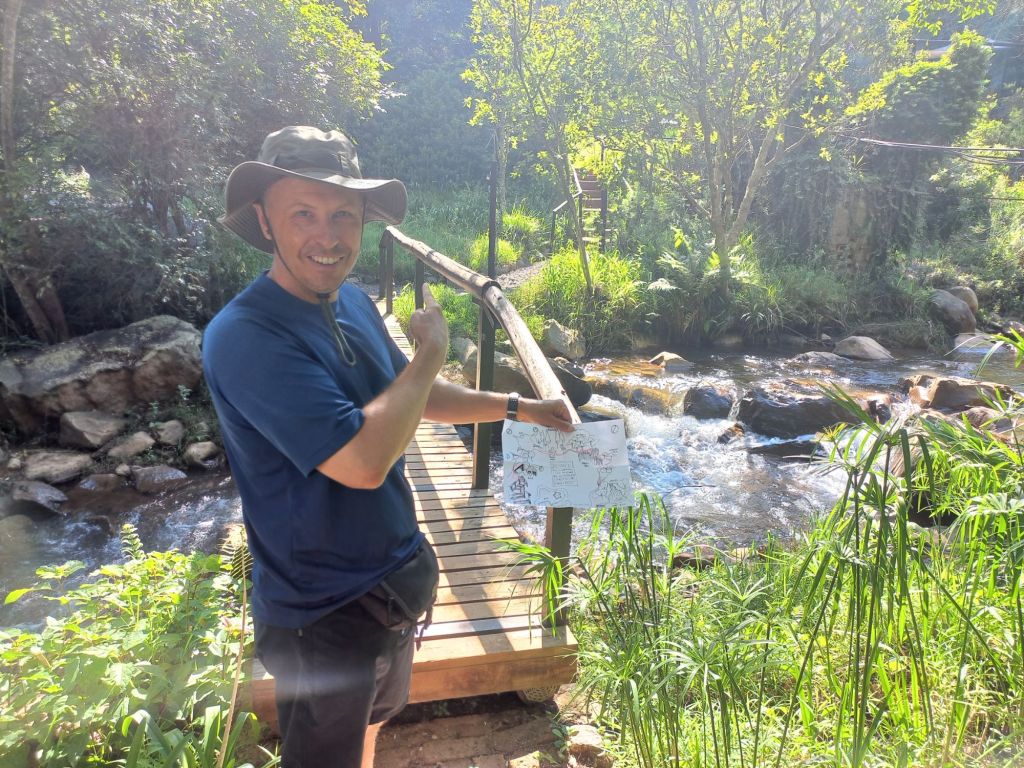 36 Grad wird es heute und man spürt es schon beim Frühstück auf der Terrasse. Wir beraten mit Hotelmanager Edward, wo wir uns abkühlen könnten. Der Forest Wasserfall ist zu gefährlich, der Weg ist zugewachsen und alles, was keinen Eintritt kostet, wird nicht bewacht, also lieber lassen. Wir verlassen zunächst einmal Graskop