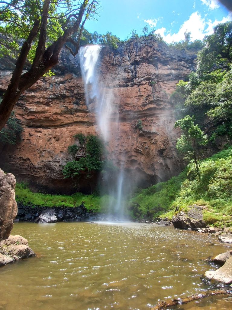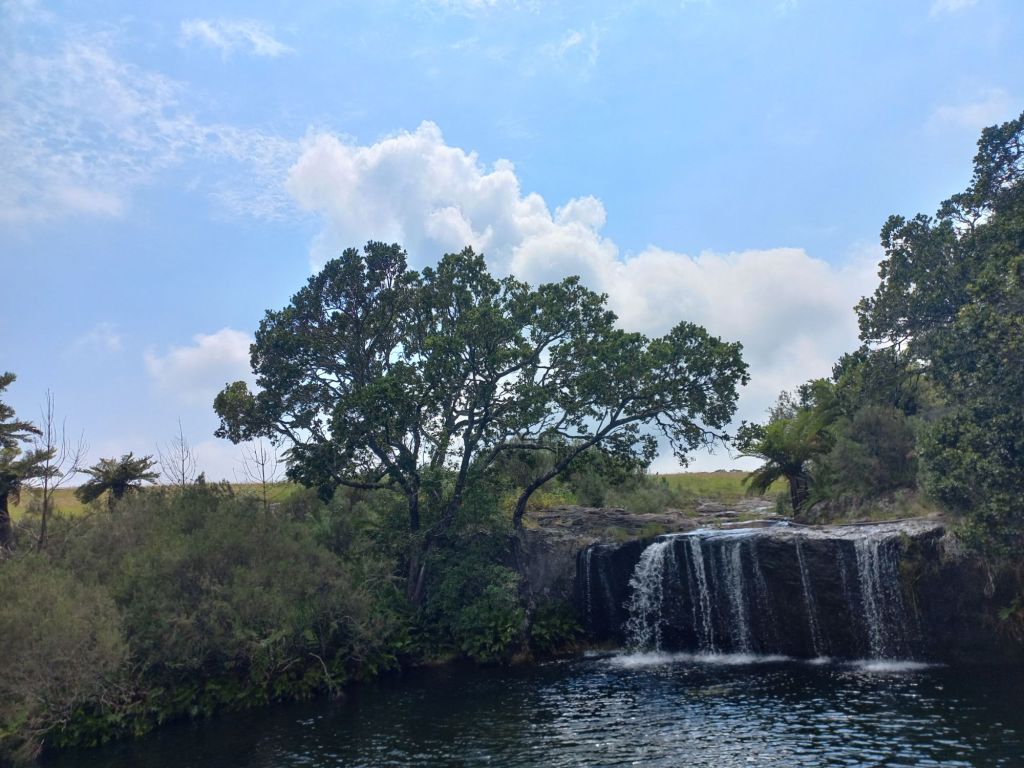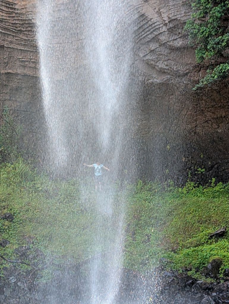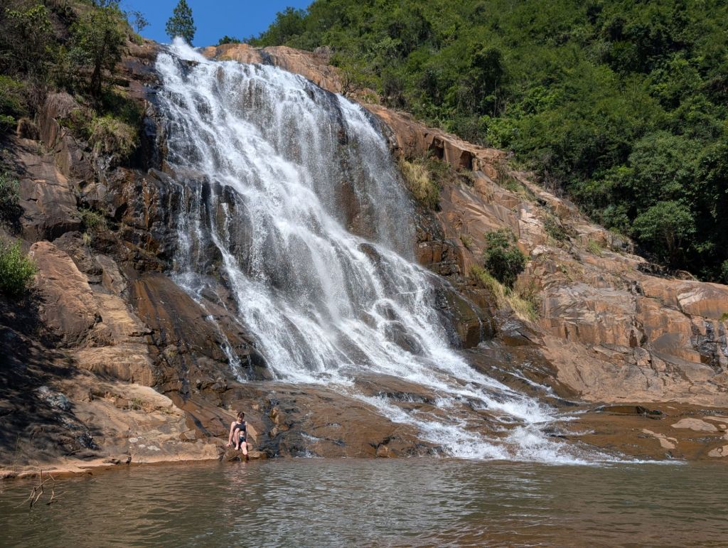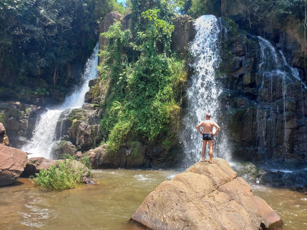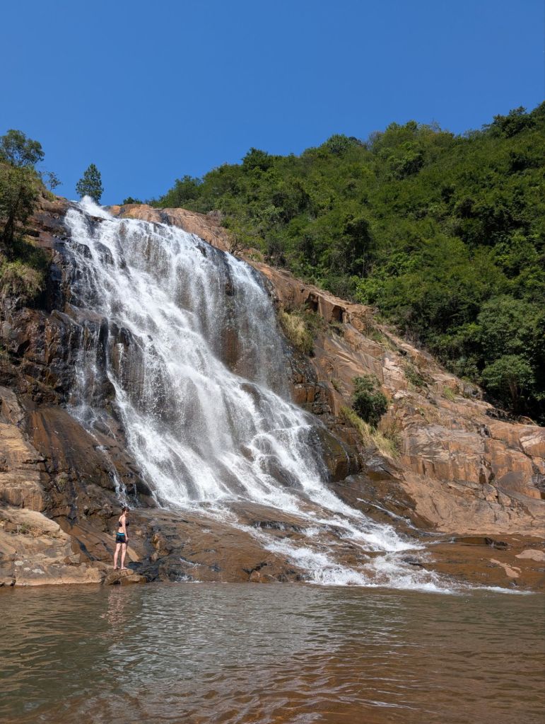 Und dann liegt er vor uns der geheime Wasserfall, der keinen Namen trägt und über Google Maps nicht zu finden ist. Ein Traum von einem Wasserfall breitet sich vor uns aus und bildet einen einladenden Pool zum Reinspringen.