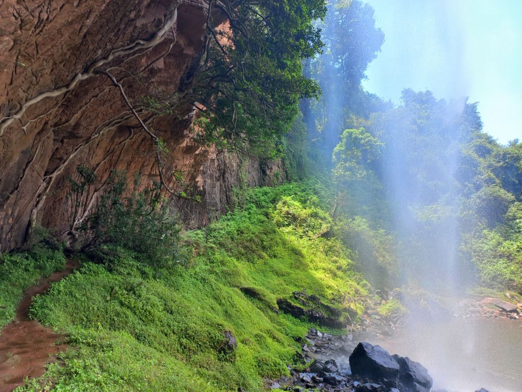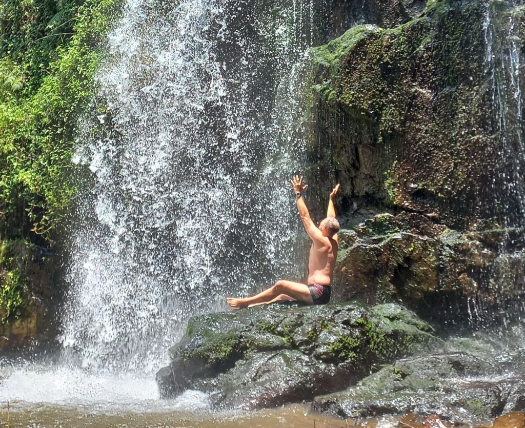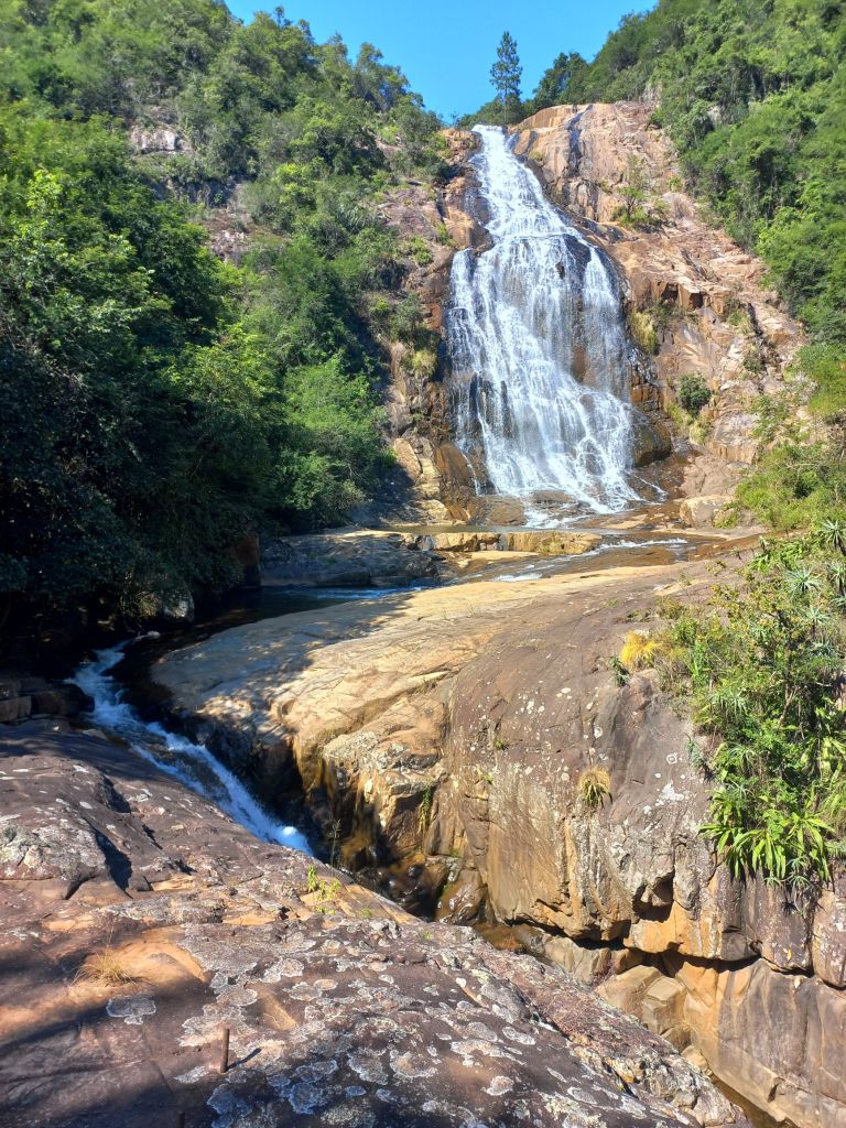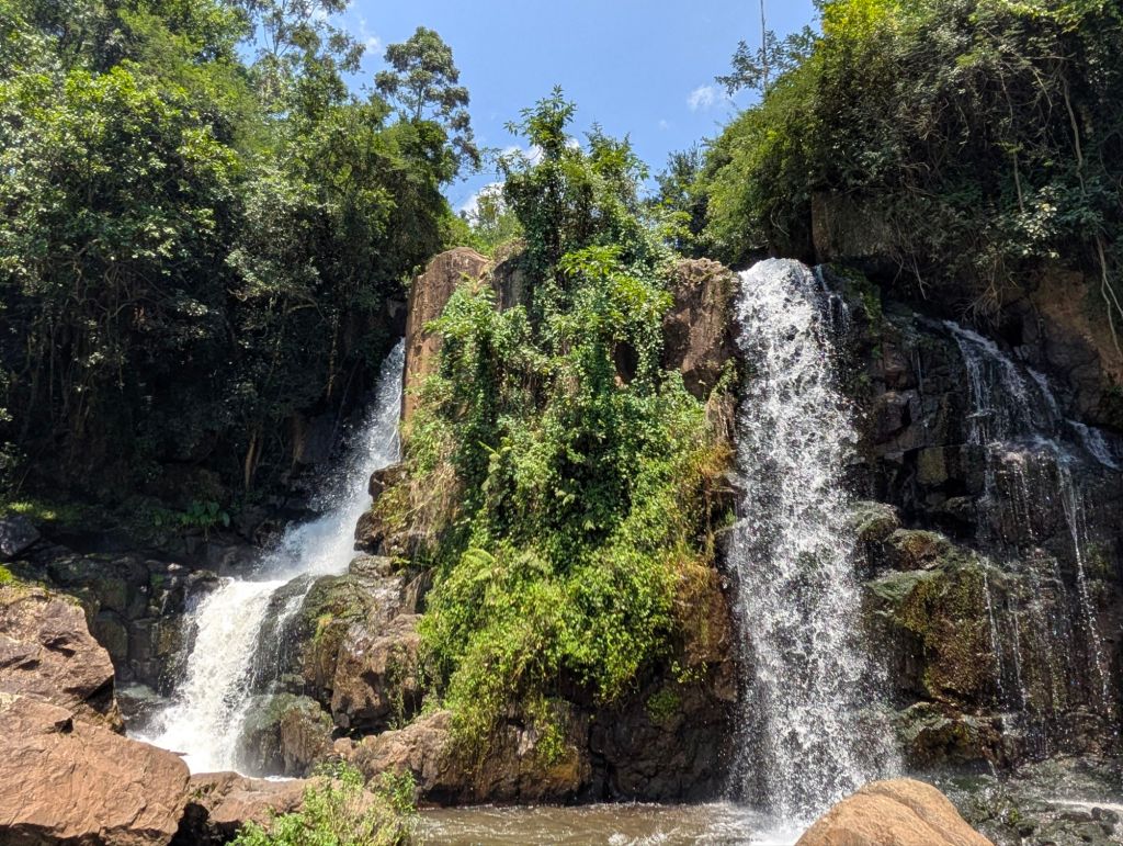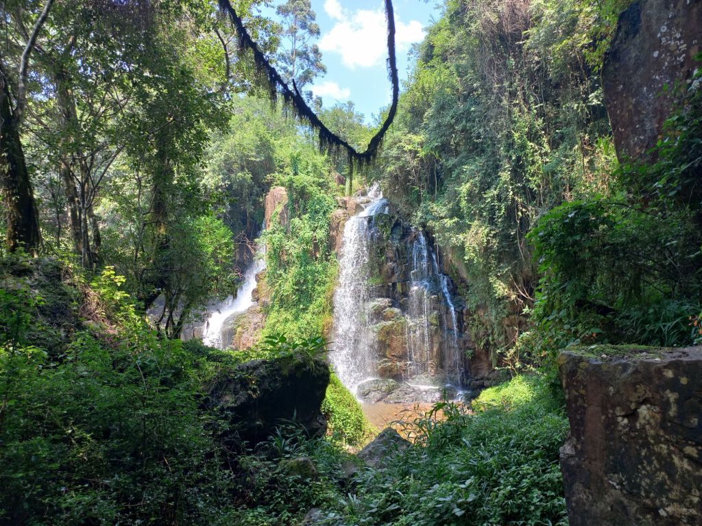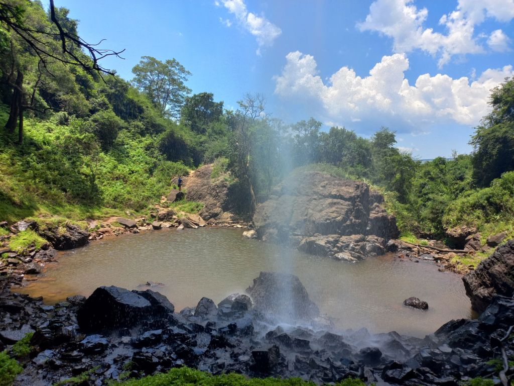 Und dann liegt er vor uns der geheime Wasserfall, der keinen Namen trägt und über Google Maps nicht zu finden ist. Ein Traum von einem Wasserfall breitet sich vor uns aus und bildet einen einladenden Pool zum Reinspringen.