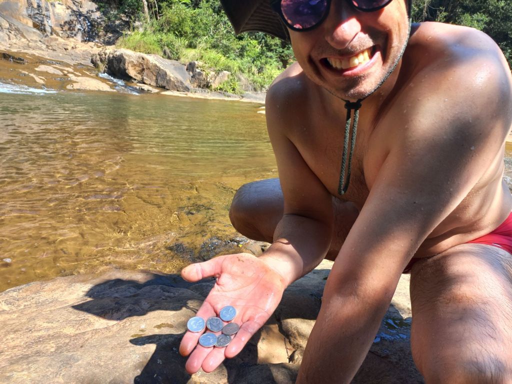 Menschen, die in die Gunst kommen diesen Wasserfall zu sehen, werfen Münzen in den Pool und dürfen sich etwas wünschen. Marcus fängt an nach den Münzen zu suchen und wird im Rausch zu Gollom und hält mir stolz seinen Schatz hin. “ Dass darauf ein Fluch liegt,weißt du doch, man darf keine fremden Wünsche stehlen!“ Ihm ist es egal und wir sind um 12 Rand reicher (60 Cents).
