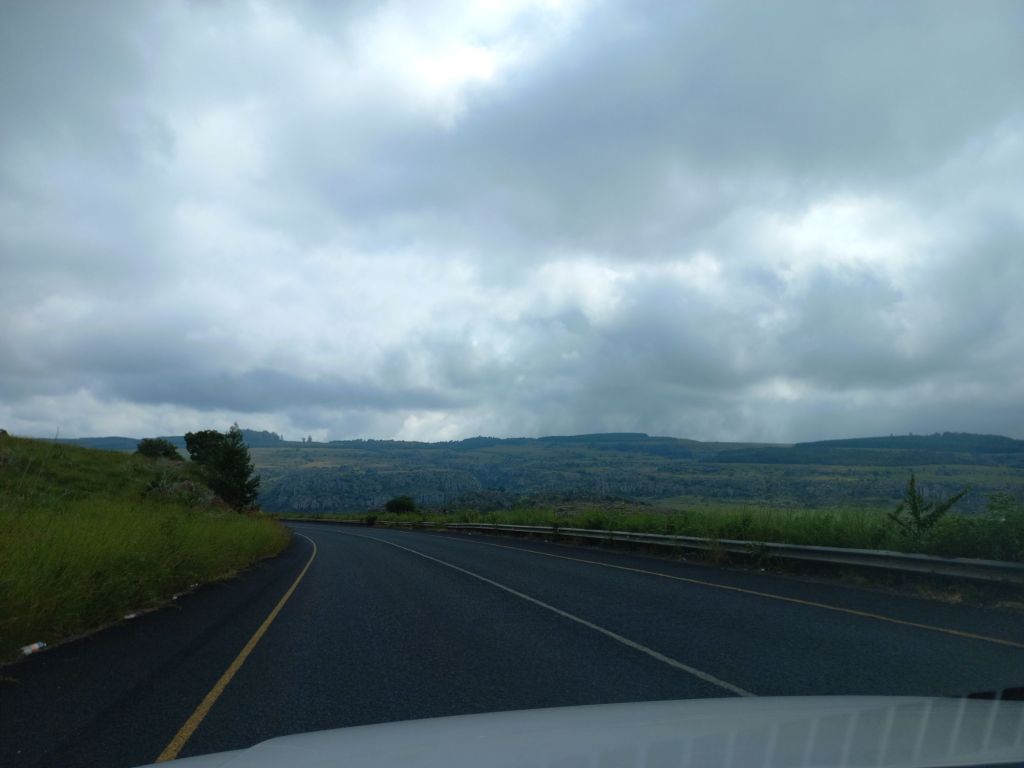 herumfahren, ein Teil der Drakensberge ist im Weg. Diese Strecke ist landschaftlich ein Hingucker, wird von Touristen jedoch kaum noch frequentiert.