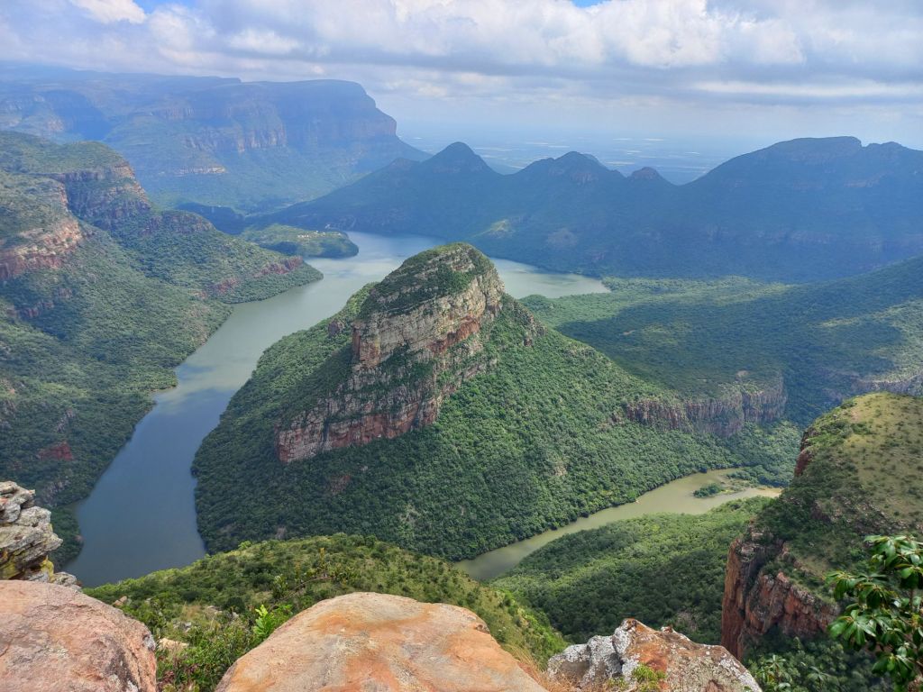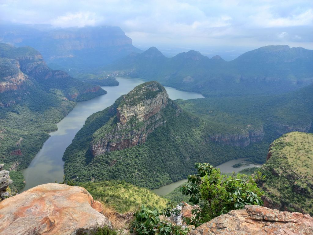 Ein paar Meter weiter ist der Aussichtspunkt auf die drei Rondavels, also die drei dicken Berge.