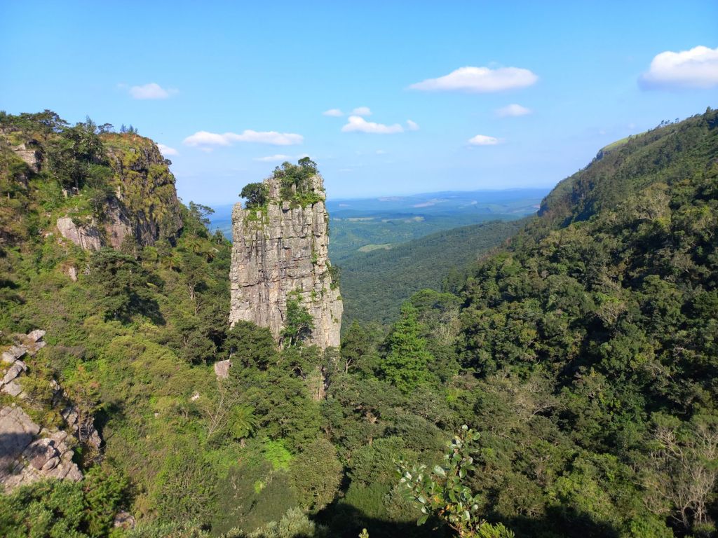 Neuer Tag, neues Licht am Blyde River Canyon, so unsere Hypothese. Wir fahren als zum 3. Mal die 50 km lange Strecke zum Aussichtspunkt. Diesmal habe ich Zeit für Fotos vom größten Waldgebiet Südafrikas.