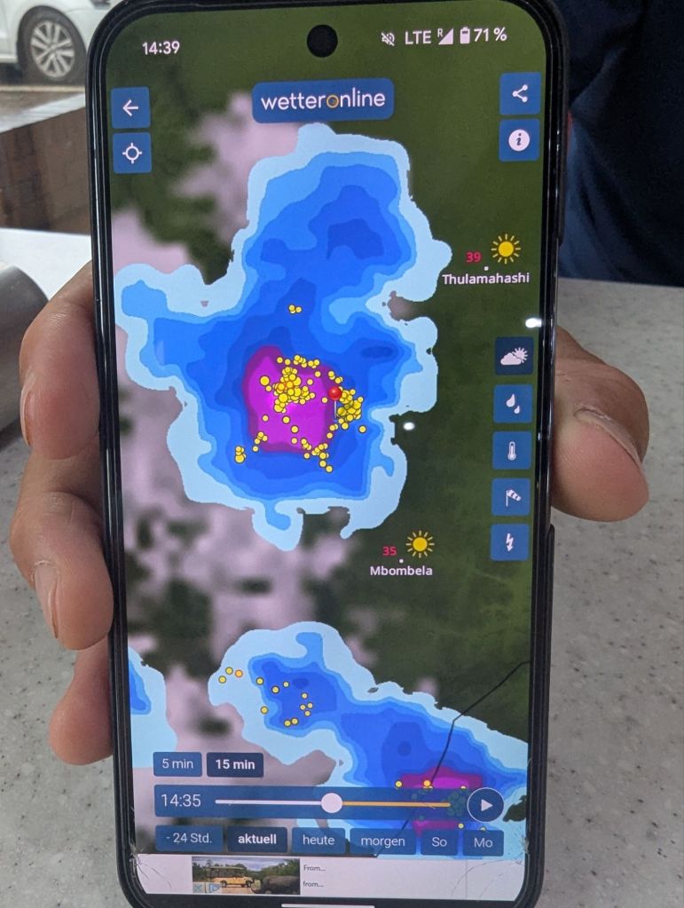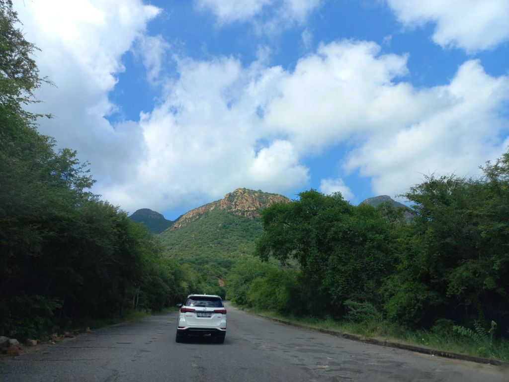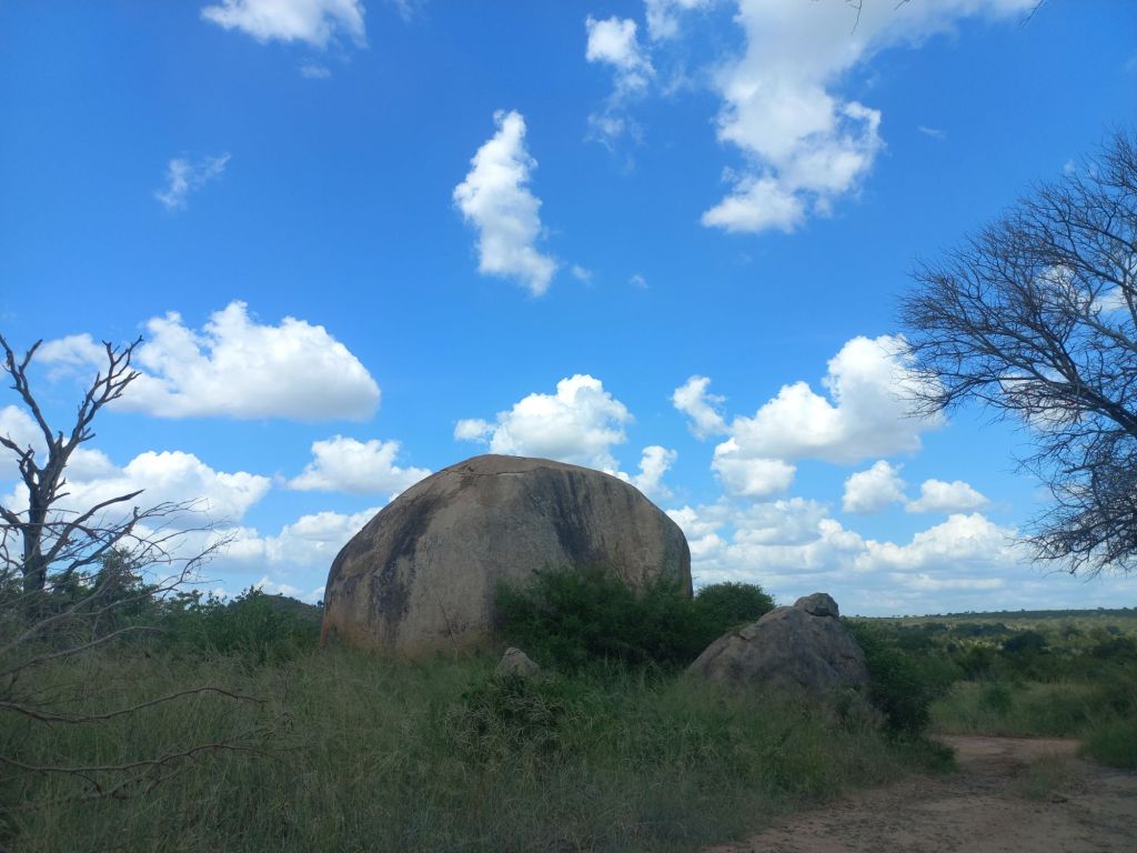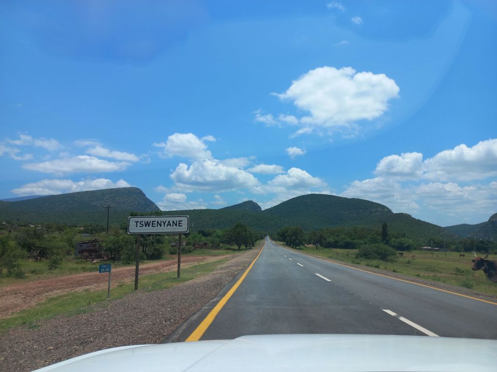 Die Anfahrt zum Park ist nur 20 Minuten und die Schlangenlinienfahrt akzeptiere ich dann doch, weil wir den großen Schlaglöchern auf der Teerstraße ausweichen müssen. Am Einlass Phabeni Gate gibt es dann einen kurzen Schlagabtausch zwischen Guide gleichzeitig auch Fahrer und den Rangern, was bei einer Reifenpanne zu tun ist. “ Anrufen, nicht aussteigen, wir helfen dann, Notfallnummer hast du ja!“