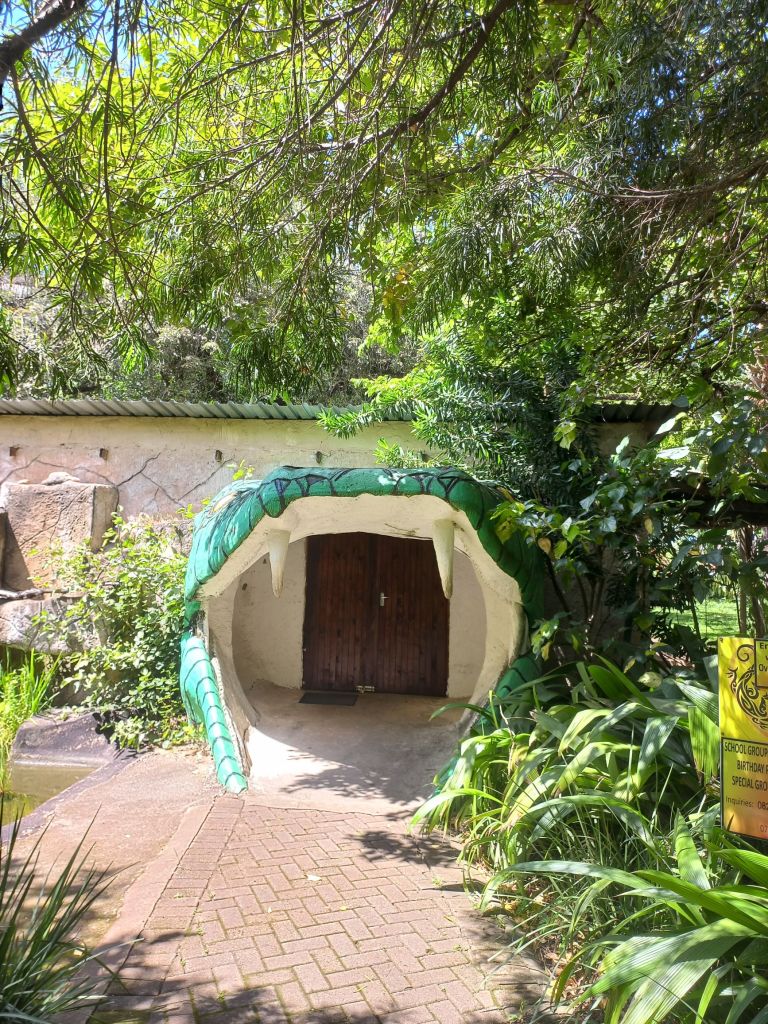 Pünktlich um 10 Uhr stehen wir vor einem weit geöffneten Schlangenmaul, aber der Eingang bleibt versperrt, denn heute ist Ruhetag.