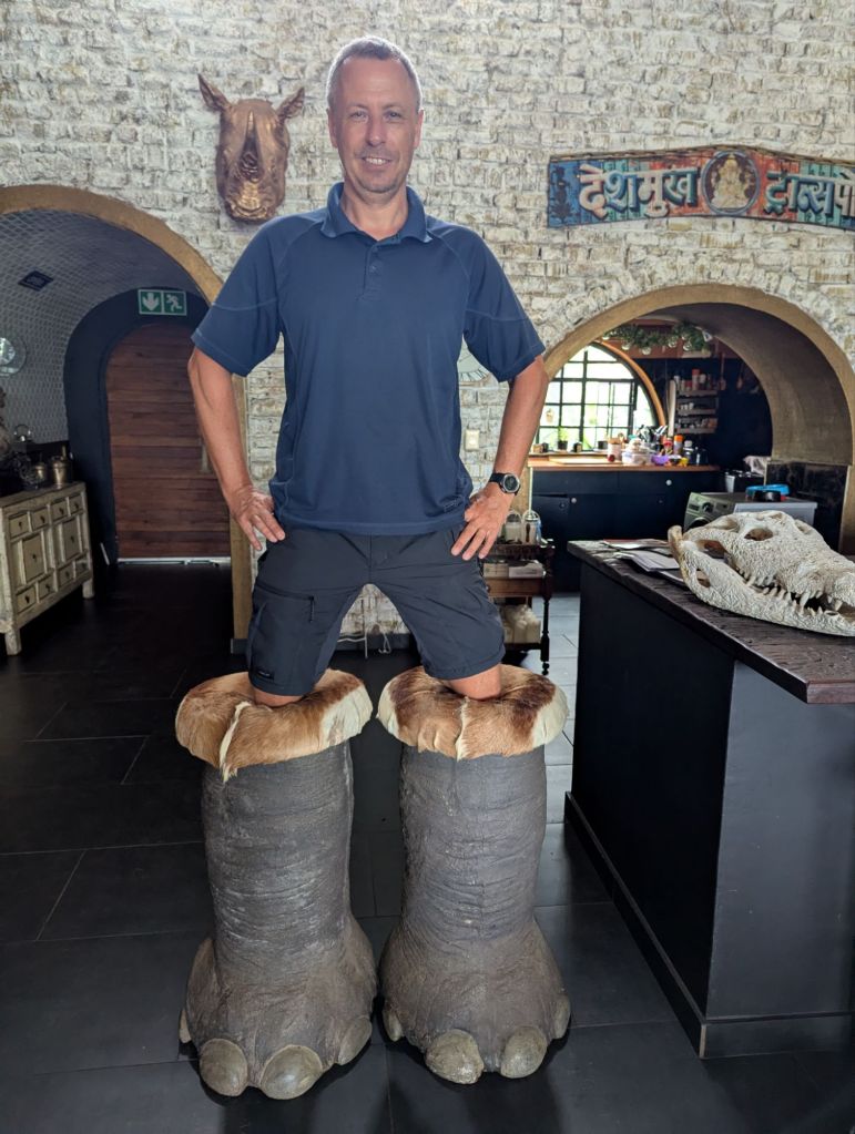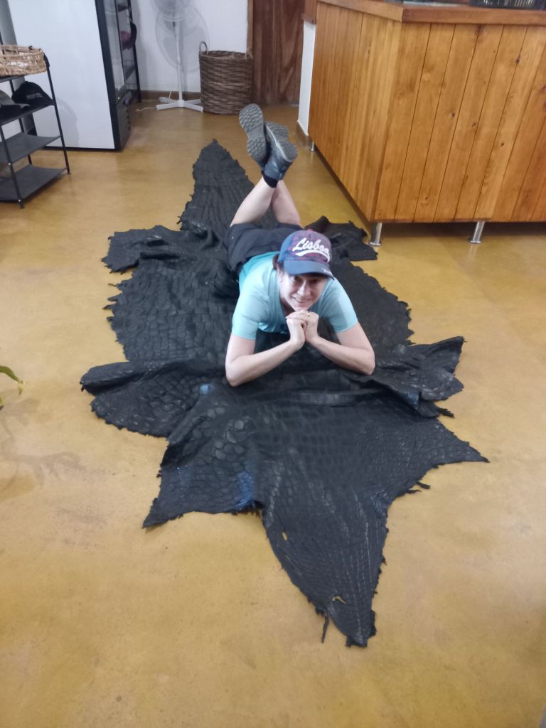Ich darf dann auf einem ganzen Krokodil Vorleger posieren.