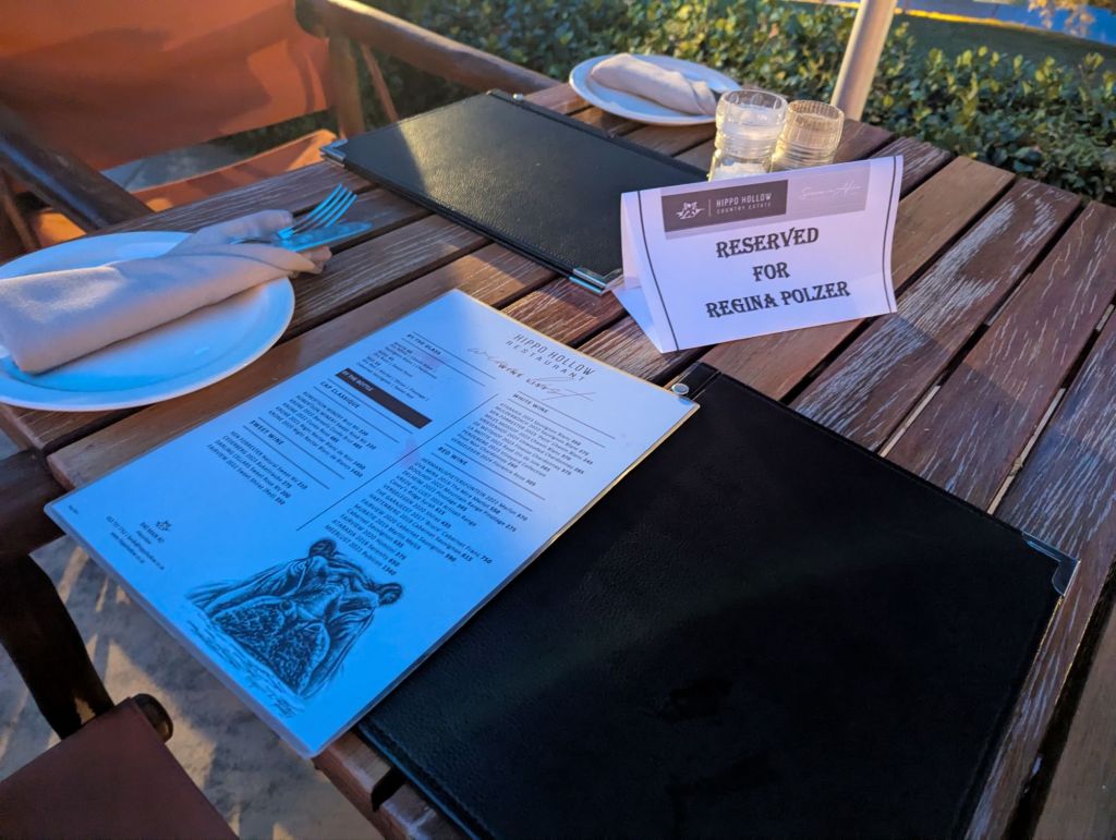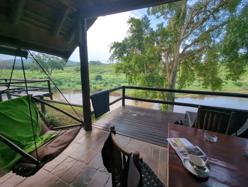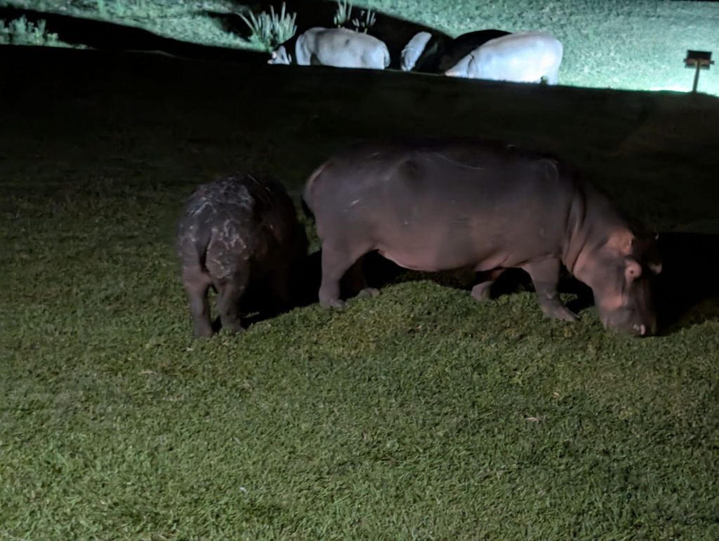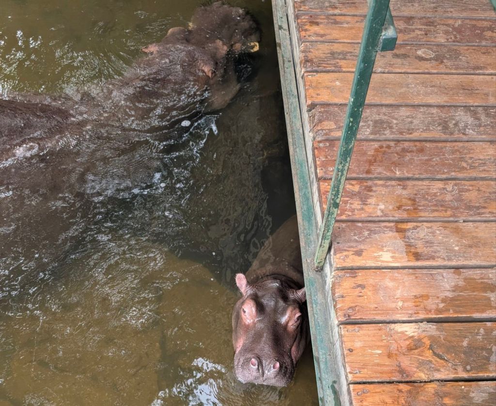 für die Toilettenpause und einen Kaffee mit Blick auf die kleine Flusspferdfamilie mit frisch geborenem Baby. Super cool.