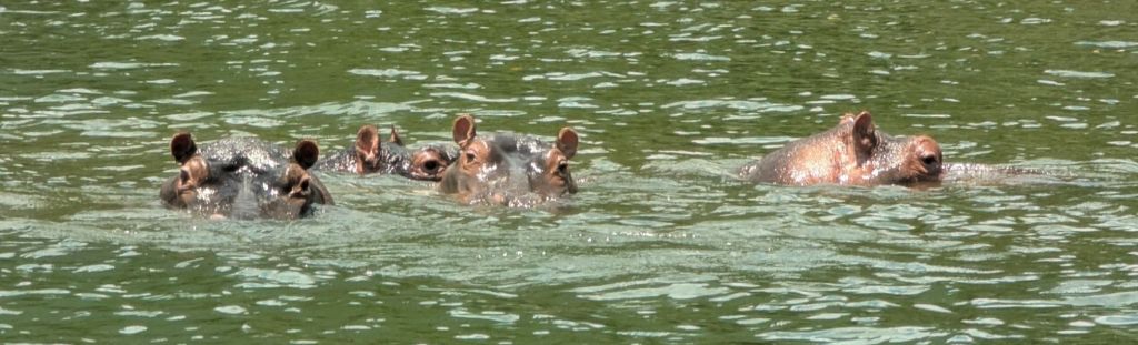 Allein für diese Bootsfahrt hat sich die ganze Gurkerei gelohnt. Tolles Panorama, ein Wasserfall mit einem tränenden Auge, Flusspferde, diesmal nicht zum Knutschen und Krokodile.