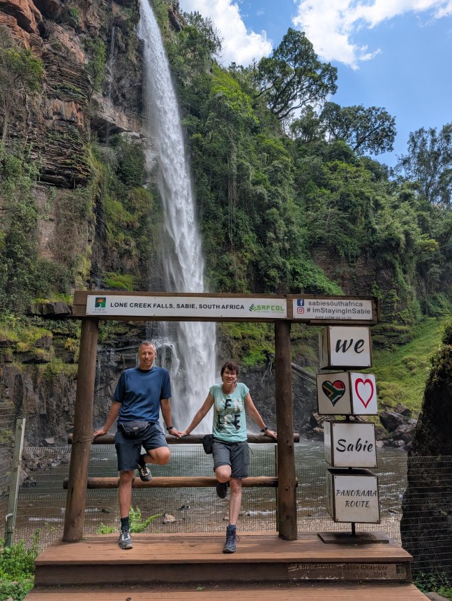 In Sabie gibt es noch den Sabie Fall, der Wasserfall für die, die es eilig haben. Parken, ein paar Schritte gehen, Fotos machen und der Wasserfall ist im Kasten, bzw. auf dem Handy.