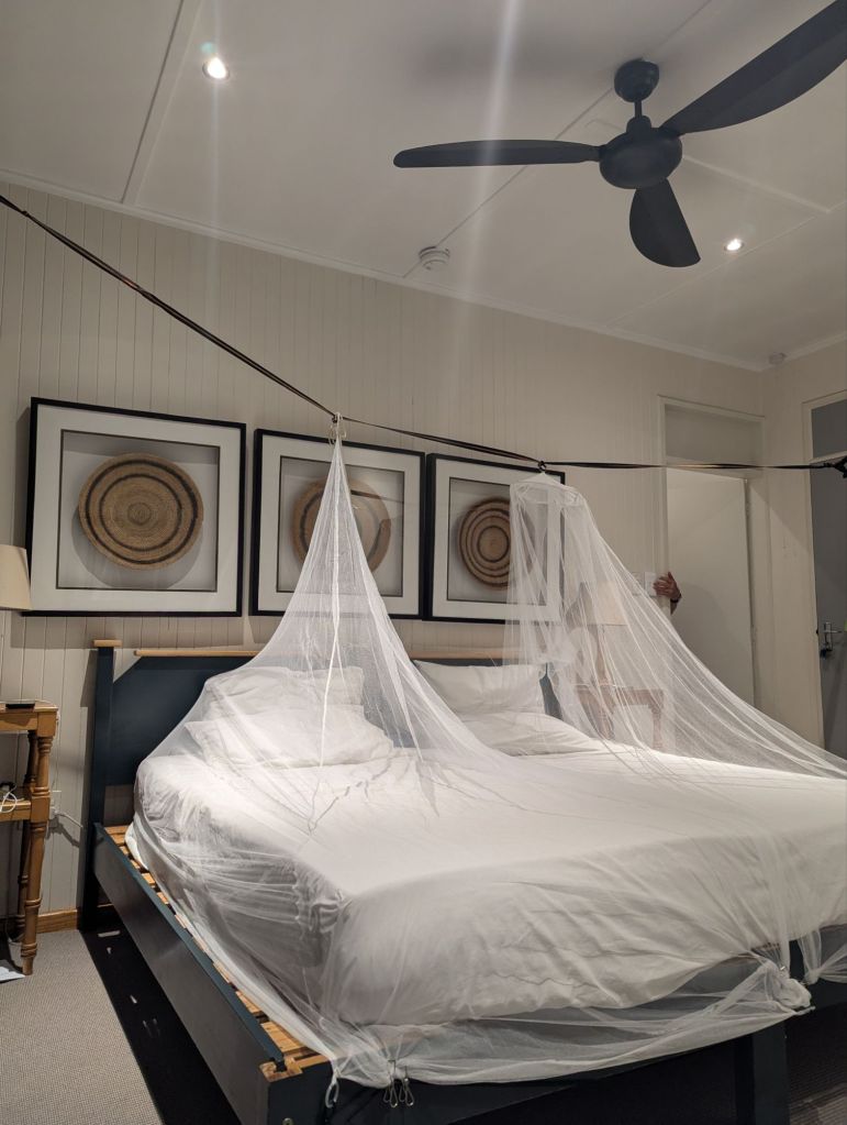 Wenn man sonst nichts im Urlaub zu tun hat, zieht man zwischendurch um und konstruiert neue Moskitonetzabspannungen.