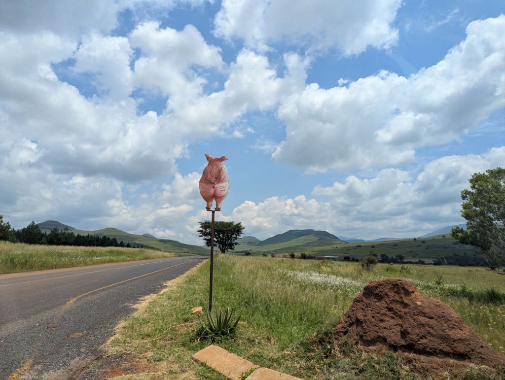 Wir sausen direkt zum Blyde River Canyon durch und hoffen, dass die diesige Sicht von der Sonne aufgelöst wird. Wenn das Navi dann Stau auf der Route bis zum Aussichtspunkt anzeigt, liegt das meistens an den Kühen, die sich rein gar nicht um die Leichtigkeit des Autoverkehrs scheren.