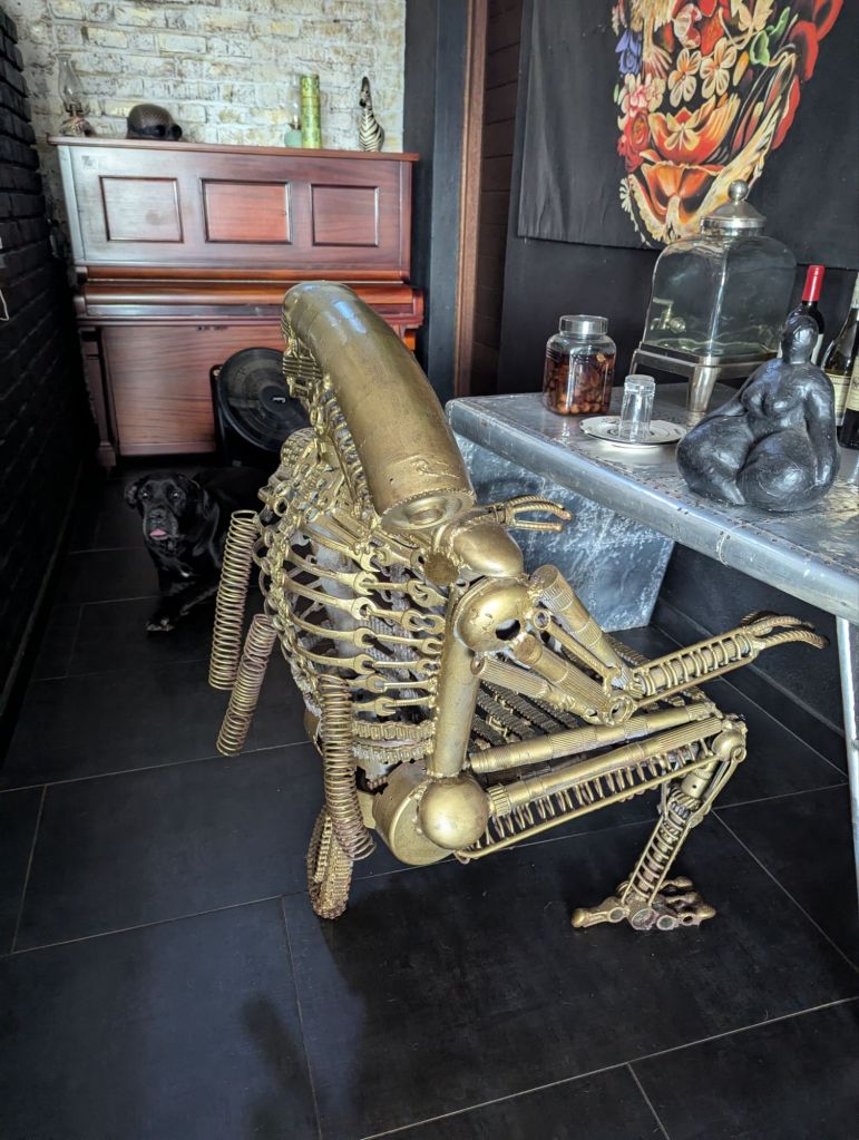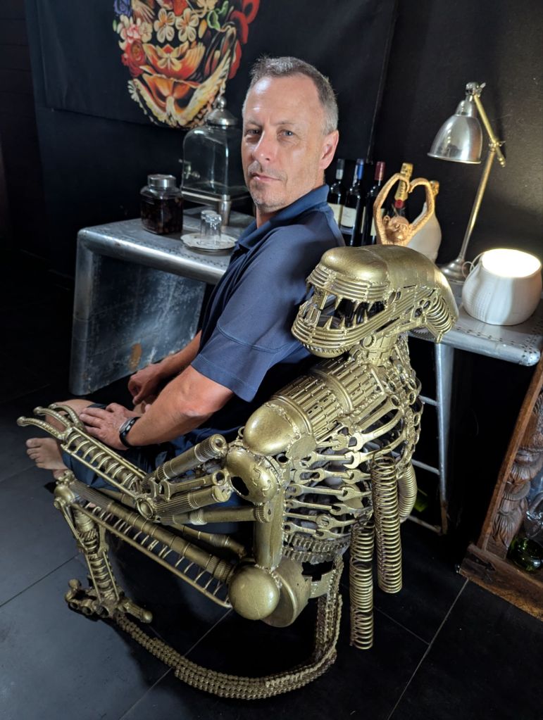 Ed Hardy Original, ein Stuhl aus Alien und ein Motorrad von James Dean.