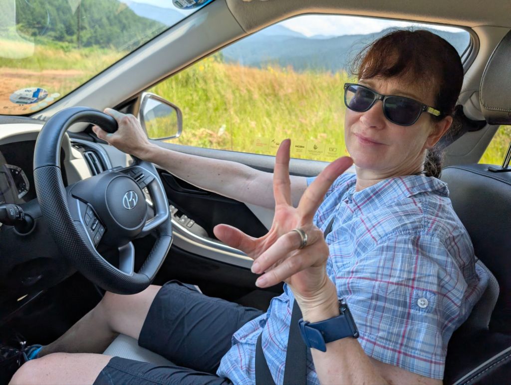 Bei der Abfahrt wird dann das gesamte Gepäck kontrolliert: alles muss in Greifweite sein, also alles hinter die Sitze nicht in den Kofferraum. 2 Gallonen, eine gefüllt mit Wasser, eine leer ( als eventuelle Toilette zum Aufschneiden), falls man stehen bleiben muss und nicht aussteigen darf. Taschenmesser, Fernglas, Kekse ohne Verfallsdatum, ich glaube das wird ein Survivaltrip.