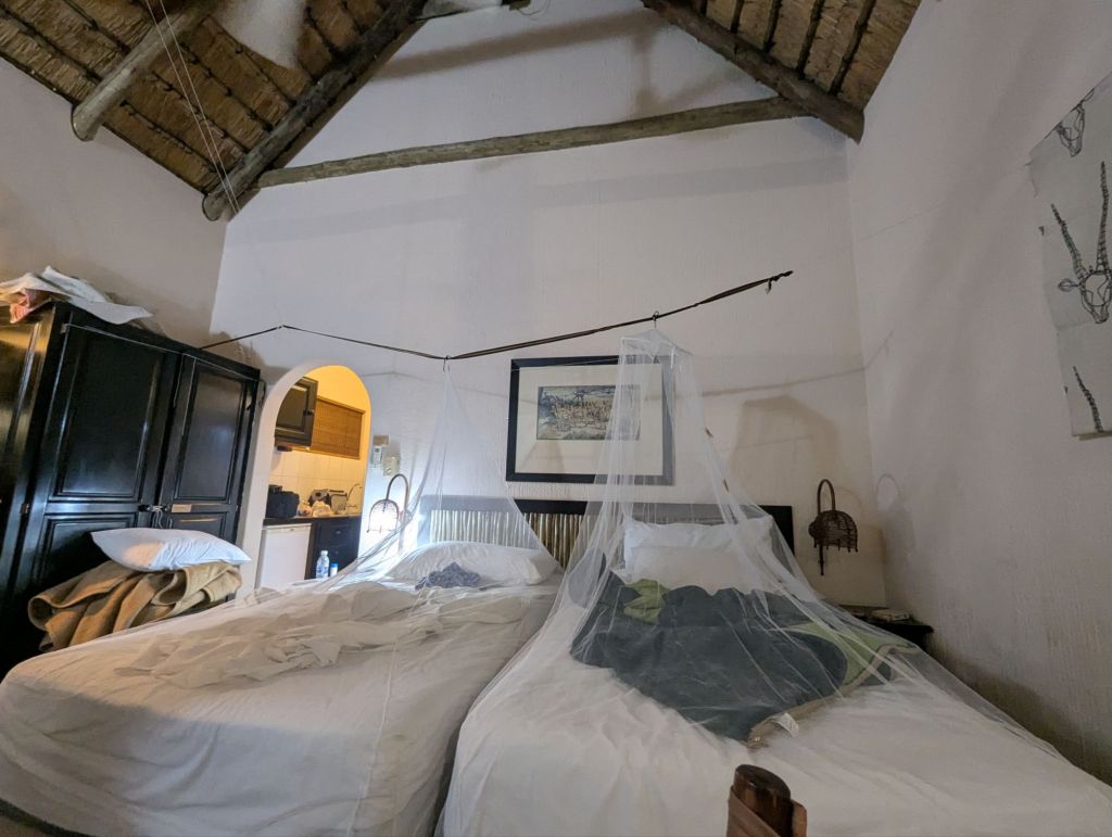 Unsere Fahrt ist nicht lang bis Graskop und wir verhandeln im Hotel um den Übernachtungspreis, schauen uns drei angebotene Zimmer an und ich entscheide mich für das falsche. Im Zimmer findet eine Mückenparty statt und einige von ihnen haben sich mit Blut vollgesogen. Ich erschlage 10 von ihnen, bekomme Anti-Mückenspray und einen Anti- Mückenstecker. Wir konstruieren unsere Moskito Netze und sind recht zufrieden mit unserem Werk.