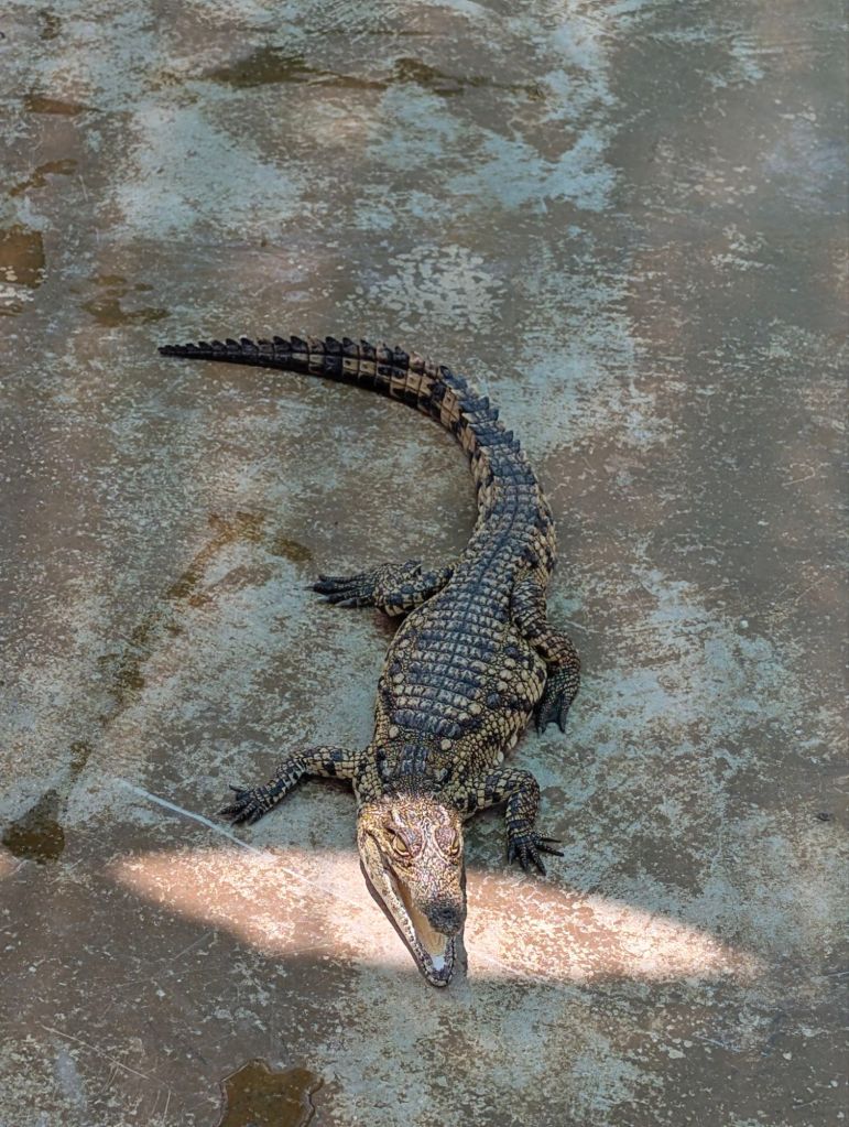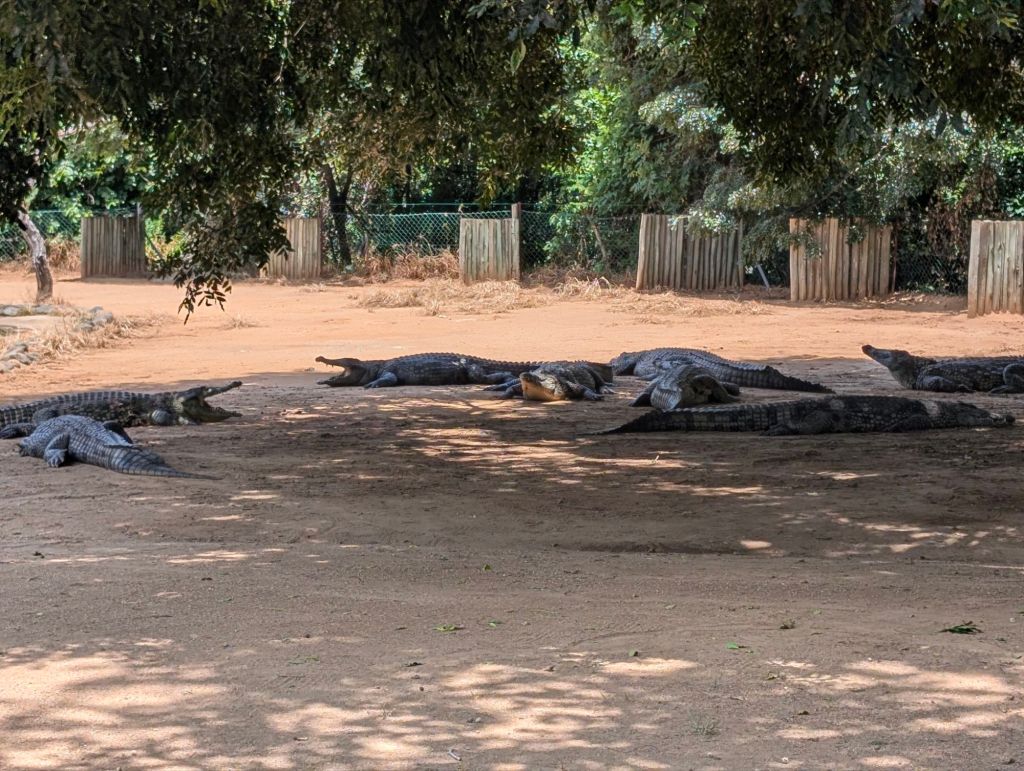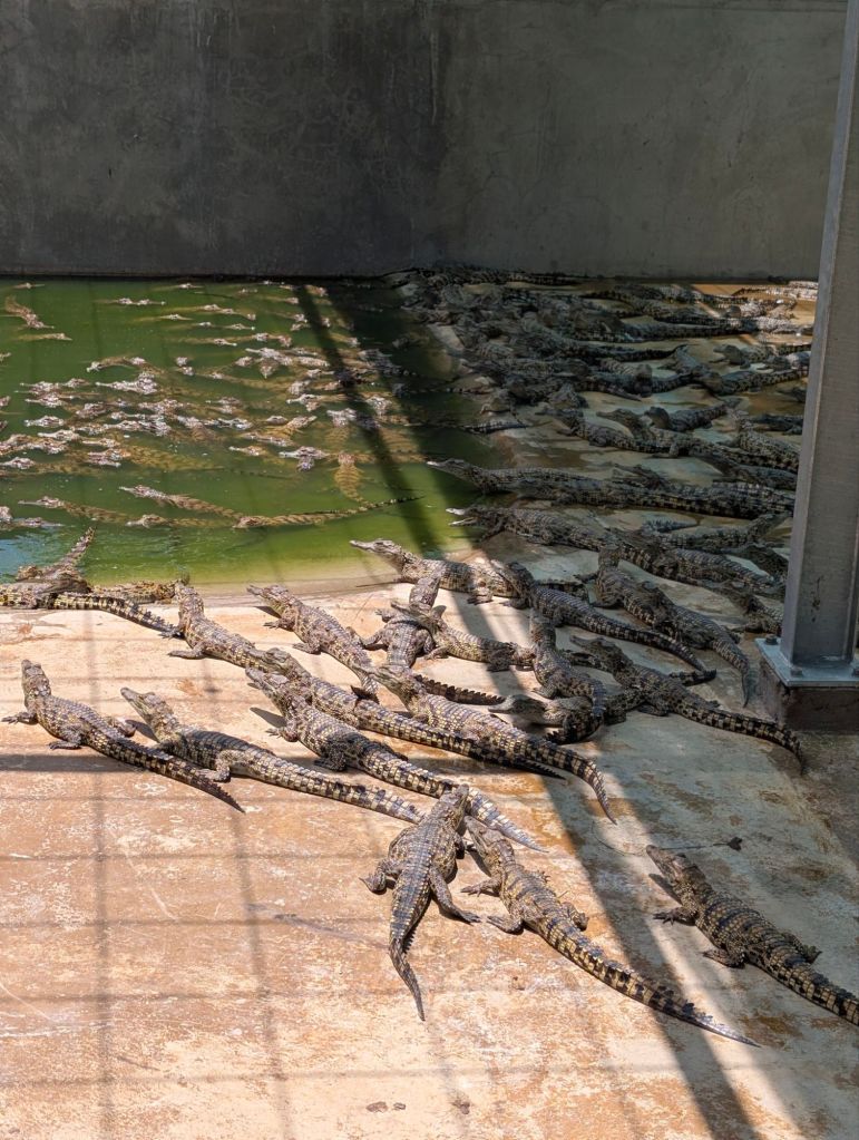 Quasi um die Ecke bei unserem Hotel gibt es aber eine Krokodilfarm, die Führungen anbietet, na gut dann halt Krokodile.