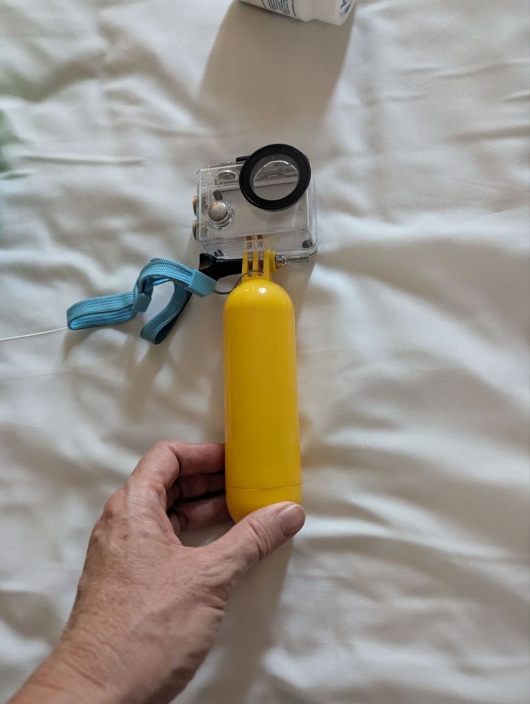 Mein Unterwasserhalterung für die Actionkamera wurde für etwas anderes gehalten. Auch als ich versicherte, dass es kein Frauenspielzeug ist, hatte sich der Gedanke an etwas unanständiges so sehr bei der Security Dame eingebrannt, dass selbst die Vorführung mit dem Einlegen der Kamera nichts brachte. „Is it good ?“ Ähm, was soll ich jetzt antworten? „You can film under water turtles and fishes! „Hmm, is it good and where can I buy it ?“