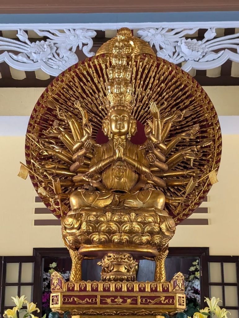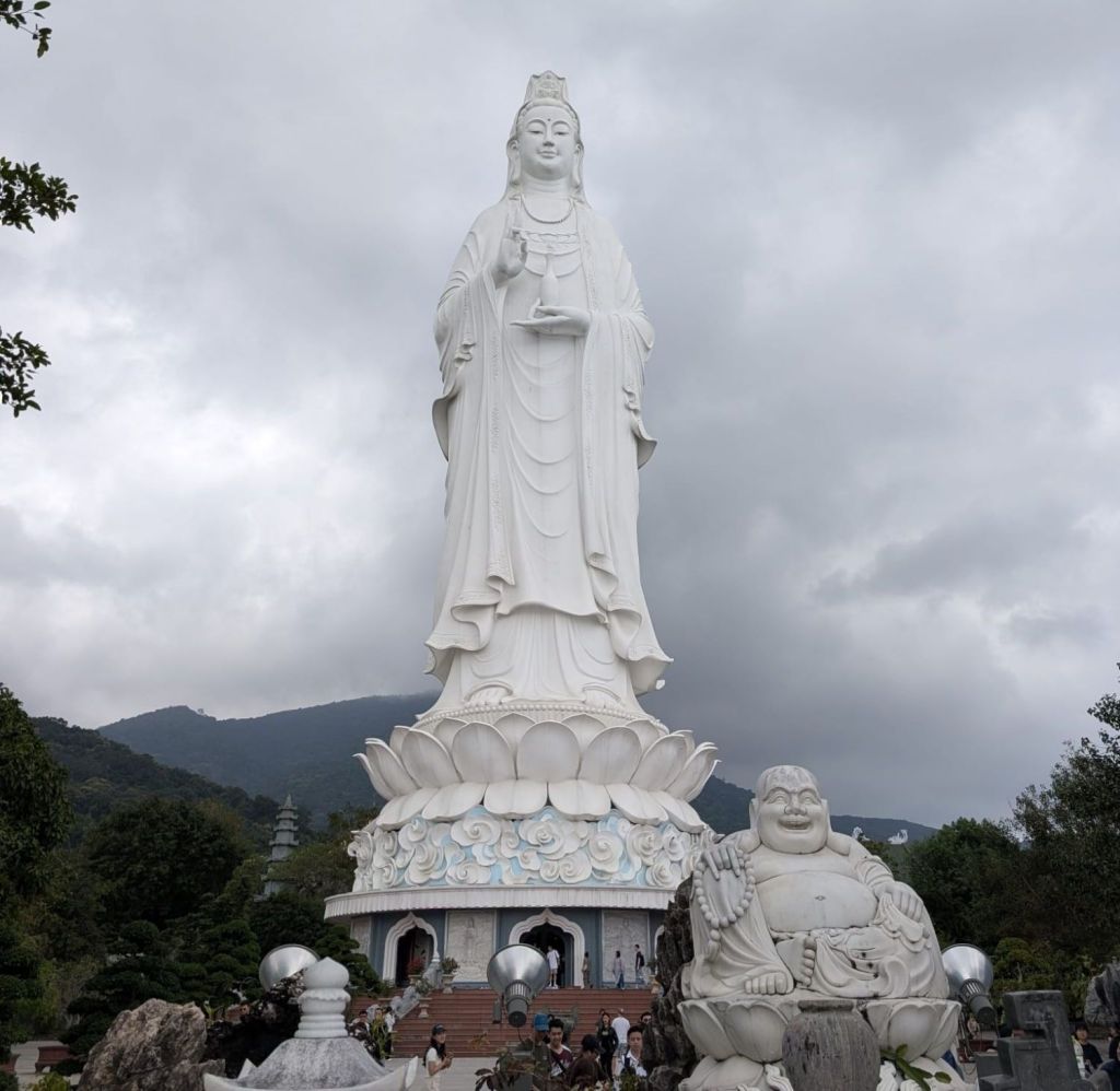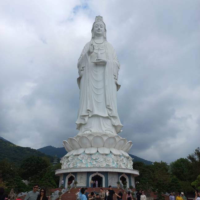 Sie ist so ausgerichtet, dass sie den Blick aufs Meer und die Stadt hat. Vu unser Fahrer erzählt uns, dass viele Fischer, die sich in Seenot befanden, zu Lady Buddha gebetet haben und durch wundersame Weise gerettet wurden.