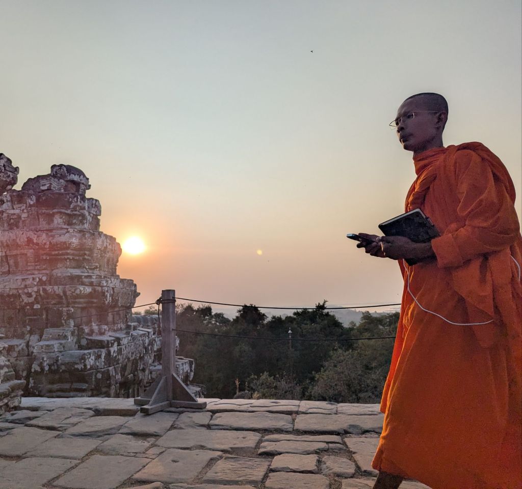 Okay nehmen wir das Foto mit dem Mönch, der in der digitalen Welt angekommen zu sein scheint.